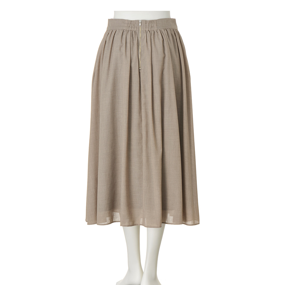 MINIMAL CHIC私らしさが輝く洗練ベーシックシンプルだから際立つ研ぎ澄まされた洗練とセンスが光る拘りで、着ればたちまちお洒落な印象に!やっぱり頼りになる上質王道アイテム。べーシックなアイテムこそ、素材の上質感とさりげないディテールが映えるもの。サラサラと肌を流れる風合いが気持ちの良いギャザースカートは、ウール混カバーリング糸を織り上げた繊細なシアーボイル生地。ウエストベルトは幅を広くとり、後ろ中央のゴムギャザーで安定感のあるはき心地に。あえてムシ見せ仕様にしたメタルファスナーが、さりげなく存在感を放って。