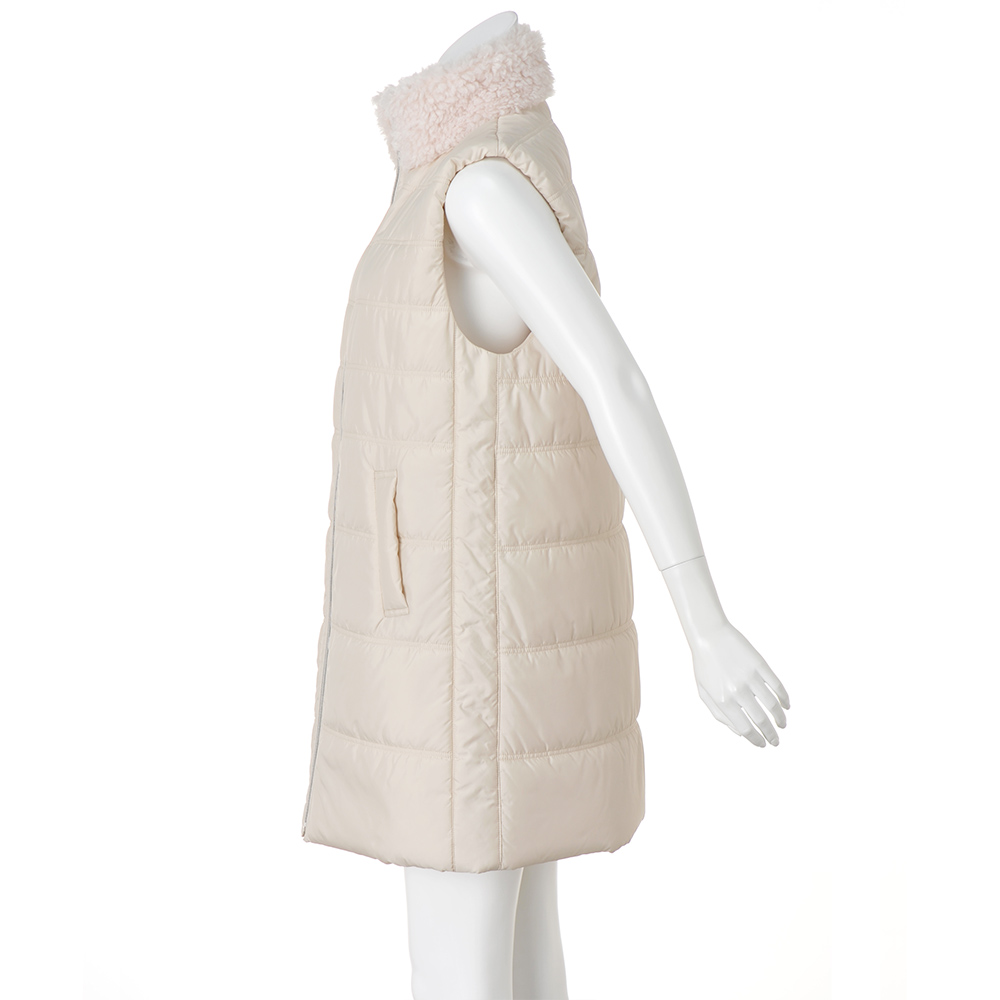 機能的で着心地よいアイデア。寒い季節の外出が待ち遠しくなる有能アウター、肌にも優しい上質素材――。ワードローブの可能性が広がるアイテムをご紹介します。愛らしい巻き毛とキルティングが暖かさと細見えを叶えてはっ水加工を施した高密度タフタ生地に、襟のみエコファーブランド「ECOPELR」のカルガンラム風ボアで切り替えました。サイドの側章切り替えやダブルのキルトステッチが着膨れを抑え、スマートに着こなせます。≫ POINT顔周りに上質な華やぎと暖かさを添えるカルガンラム風ボア襟。