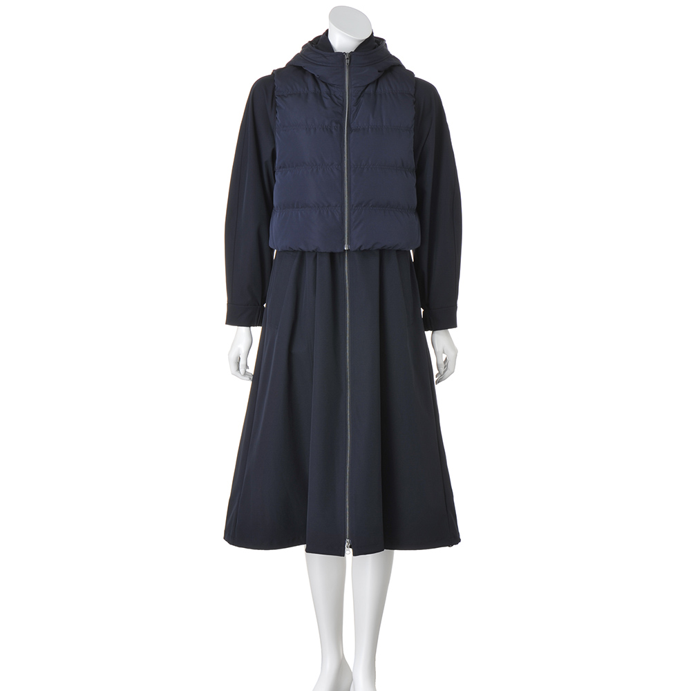 MUST BUY ITEMS春アイテムを手に入れるチャンス到来!今回の「マストバイ」はリーズナブルプライスをご紹介。気になっていたアイテムを、この機会にぜひ。気温に合わせて、重ねても、単品でも春を優雅に着こなす、三通りの美しさ今から春の花冷えまで見据えた、コート×ベストのレイヤードアイテム。重ねたときのバランスも、一枚でのお洒落感も計算し尽くしたセットなら、着分けも着回しも思いのまま。ショート丈のベストは脚長シルエットを演出する丈感。コートインもできて暖かさも快適。「帝人フロンティア(株)」のリサイクルポリエステル繊維「エコペット(R)」混ストレッチ素材を使用したロングコートは、しなやかな風合いで、はっ水性も兼ね備えています。ウエストと裾のドローストリング、カフス内側のゴムギャザー、ゆとりのセミラグランスリーブなど、拘りのディテールも満載。スタンドカラーに忍ばせたフードは、急な天候変化にも対応する嬉しいサプライズ!冬から春へ移ろう季節に、毎日のお洒落が楽しくなる一着です。