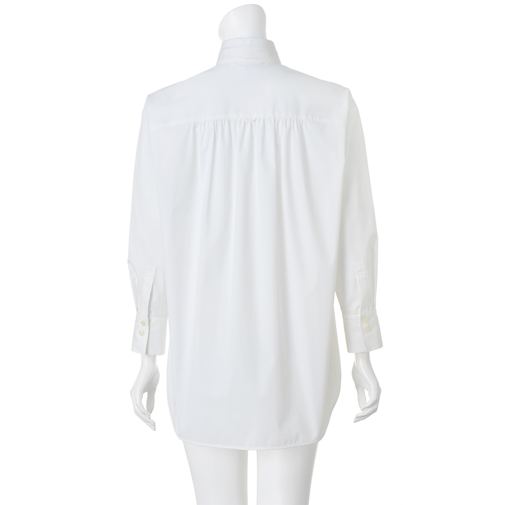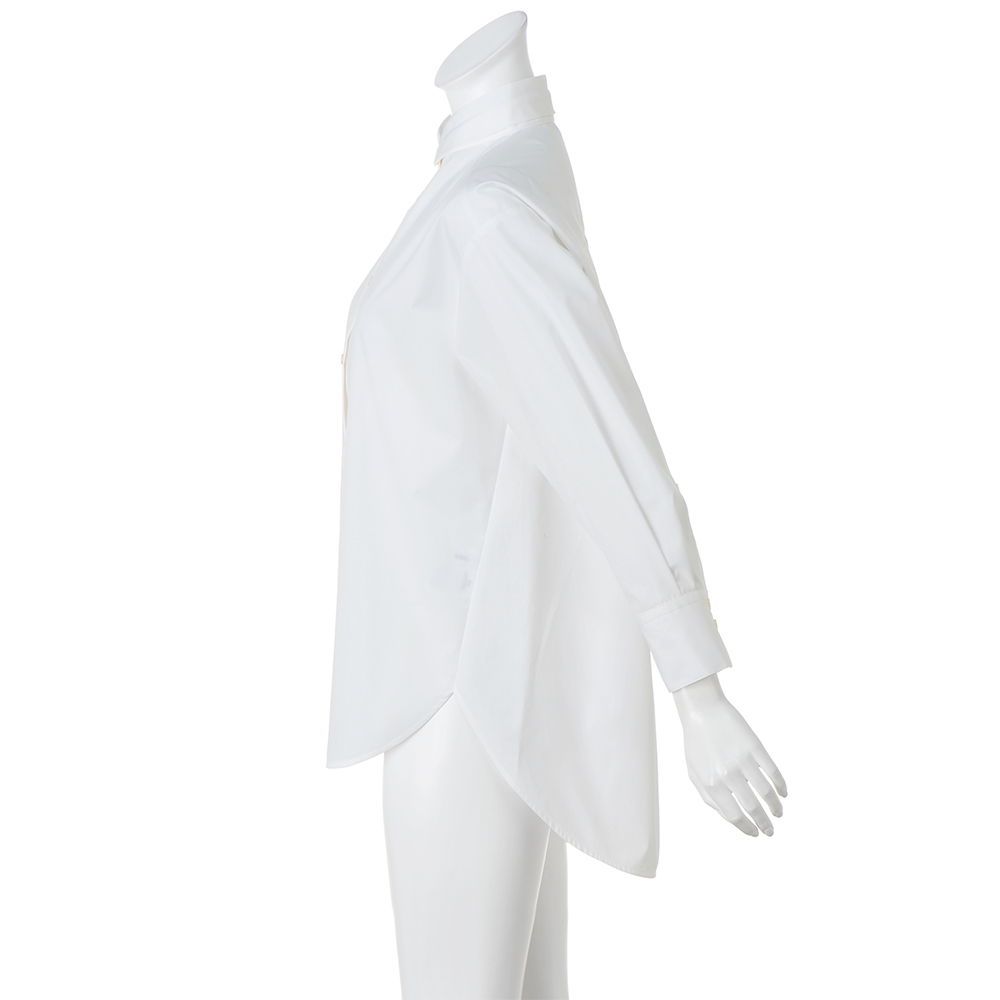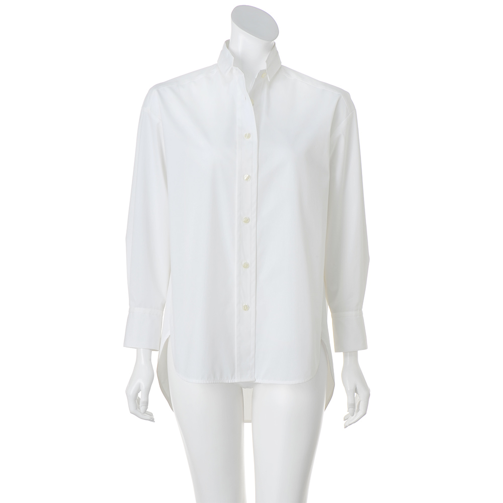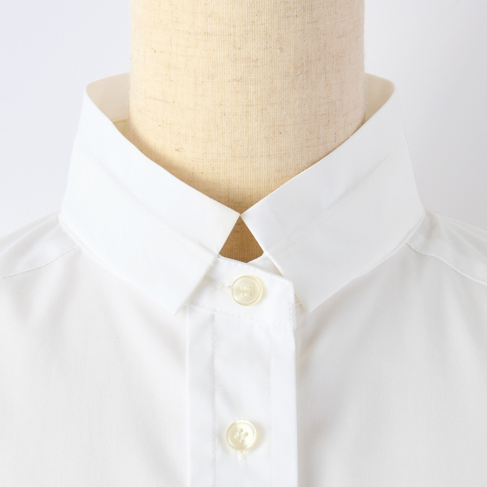 春夏に嬉しい機能服スーピマコットンとポリエステルの混紡糸を使い、風合いのよさと機能性を追求。ナチュラルな素材感なのに接触冷感、UVカット機能つきで、紫外線が強くなる春夏に頼れます。ひとクセ効いた襟のデザインがアイキャッチ。そのままではもちろん、襟を立てれば立体感が生まれて着こなしの鮮度がUP。裾はラウンドカットで動きを加えて、どんなボトムにも自然になじむように仕立てました。白シャツながら、紫外線対策にも配慮した仕上がり。[接触冷感|UVカット]