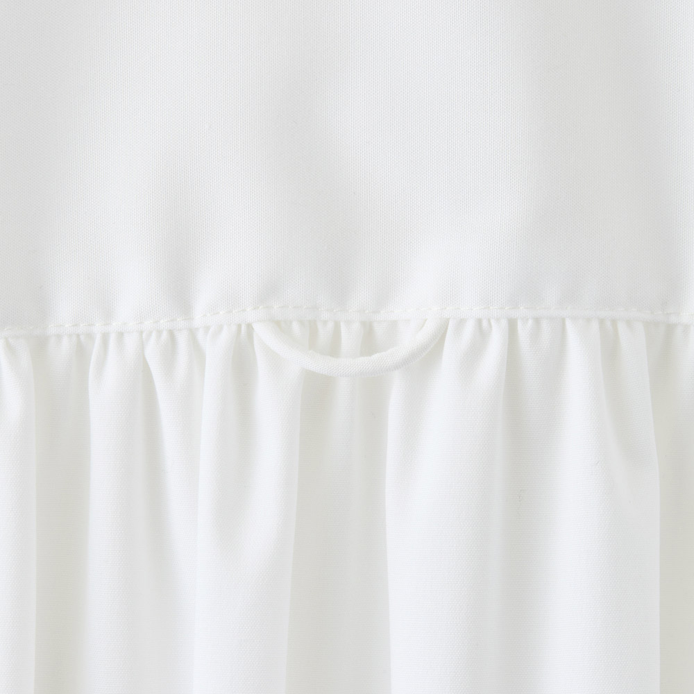 ギャザーを入れた後ろヨークには、飾りループをあしらいました。