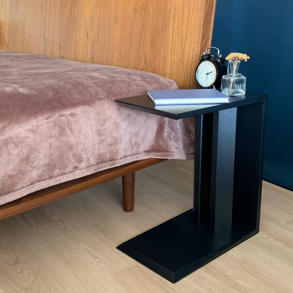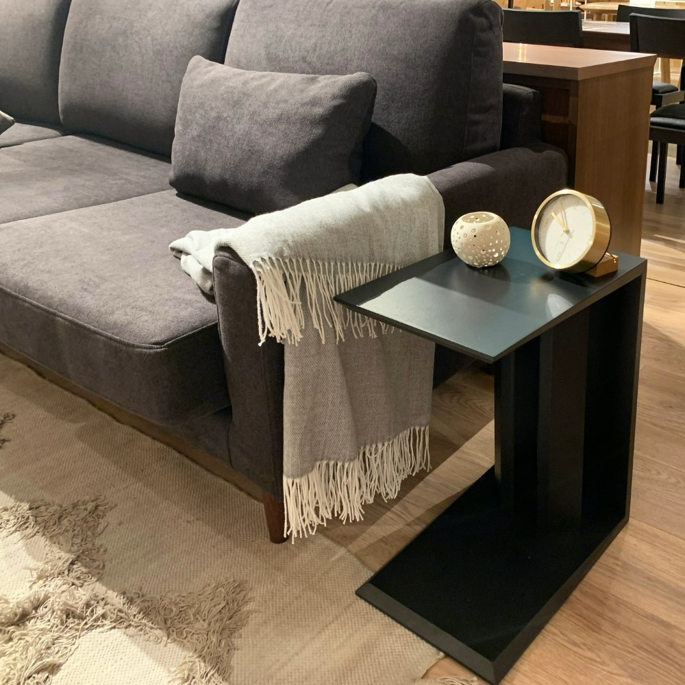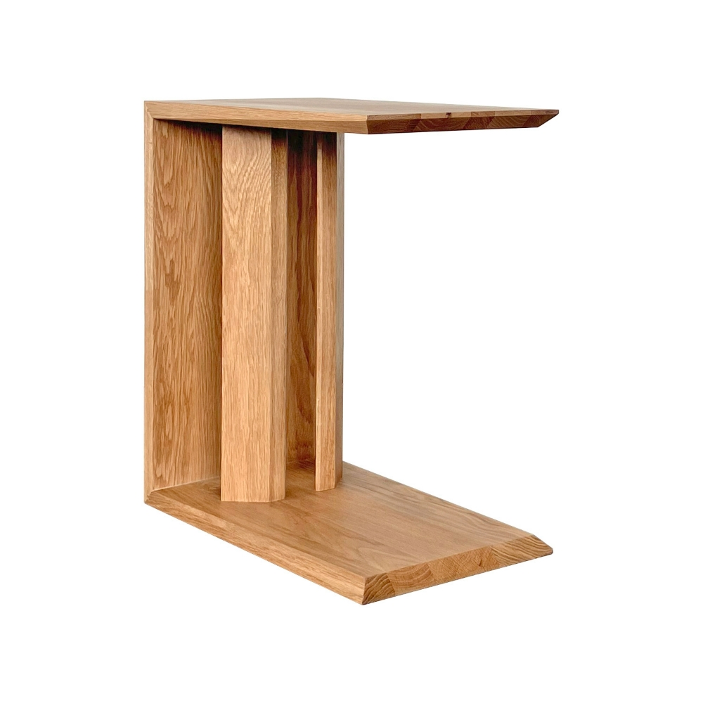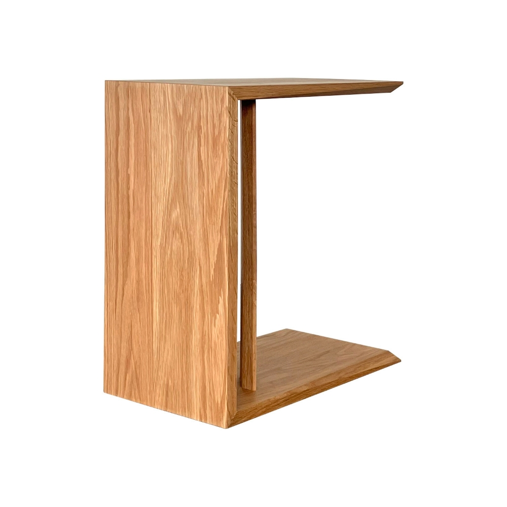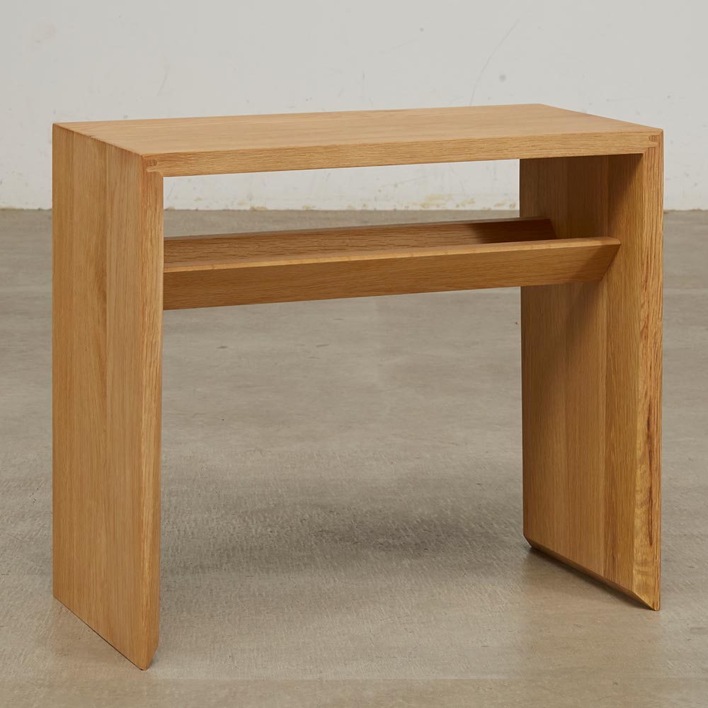 面取り加工や、斜めに走らせたライン仕上げによって軽やかでシャープな印象のサイドテーブル