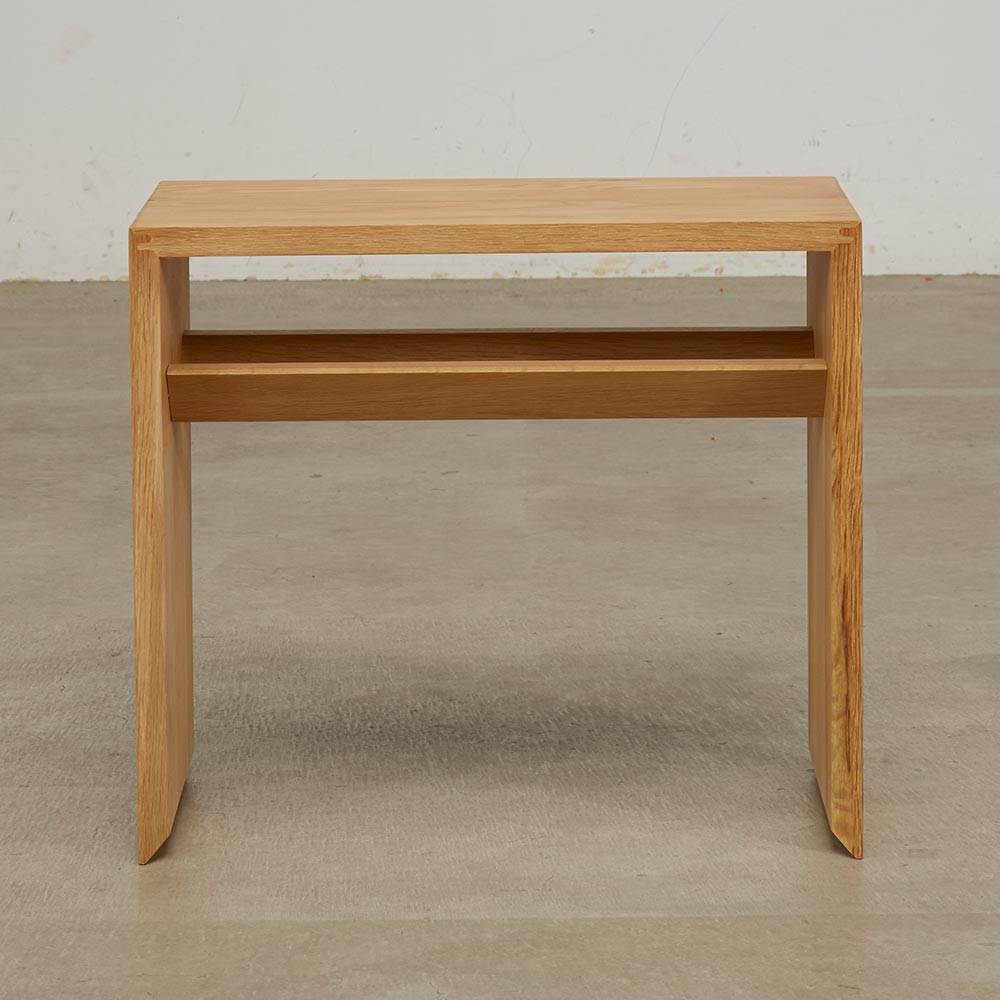 軽量で持ち運びしやすい、天然木仕上げの棚付きサイドテーブル。タテヨコ2通りの使い方が可能です。ソファに差し込んだり、ベッドサイドやエントランスなどでも、場所を選ばずフレキシブルにご利用いただけます。洗練されたデザインと機能性を両立コンパクトで場所をとらないサイドテーブル軽量で持ち運びがしやすく、縦置き、横置きの2通りの使い方が可能です。そのため、お部屋のレイアウトに合わせて自在に配置することができます。多様な用途、多様な場所でリビングのソファテーブルとしてはもちろん、ベッドサイドのナイトテーブルやエントランスのディスプレイラック、キッチンの簡易収納など、場所を問わず幅広いシーンで活躍します。そのフレキシビリティが、あなたの暮らしを一層便利にします。天然木無垢材の温もり感じる美しい木天然木ならではの風合い豊かな木目と、面取り加工やシャープなライン仕上げが絶妙に融合し、軽やかで洗練された印象を演出します。どんなインテリアにも自然と馴染み、一層スタイリッシュな空間を作り上げます。洗練されたデザインと機能性を兼ね備えたプリメラサイドテーブルで、お部屋をもっと素敵に彩ってみませんか?