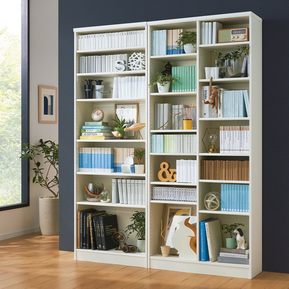 【豊富な色サイズ】【薄型省スペース】【日本製】シンプルデザインでスッキリとした印象の薄型ブックシェルフ。ホルムアルデヒドの発生を最小限に抑えたグレードの素材(F☆☆☆☆)を使用しているため、お子様のいるご家庭でもおすすめです。探しやすく大量収納できるオープンタイプ。豊富なサイズ展開で、スペースにぴったりのタイプをお選びください。4タイプの木目調と、ホワイトの計5色展開です。”全段棚調整”と”豊富なサイズ”で効率収納出来る本棚「空間の有効活用」と「無駄の無い収納」がコンセプト。豊富な色・サイズ展開でどんなお部屋にも合う収納が見つかります。ポイント(1) 棚が全段可動するから無駄なすき間を生まない!棚が全段可動式なので、収納物のサイズがばらばらでも最大限効率良くたっぷり収納できます。好きな位置に棚をセットしてしっかり固定出来るので強度も安心です!ポイント(2) 豊富なサイズ展開で、スペースを無駄無くかしこく使えるアイデア収納!豊富なサイズとシンプルなデザイン、5色のカラー展開で、設置場所に合わせたお好みの組み合わせをお選びいただけます。ポイント(3) 日本製ならではの細やかな気配り可動棚によくある、ただ水平に差し込むだけの棚受けではなく、ネジで本体にしっかり固定した上で可動棚を垂直に受け止める「フリーストップ棚受」(可動固定棚のみ)、側板と裏板をしっかり固定する裏板止メ仕様を採用し、本体の強度と棚板の耐荷重を高めています。また、高さ178cm以上のタイプには転倒防止金具が付属します。職人が作るこだわりの日本製ホルムアルデヒドの発生を最小限に抑えたグレードの素材(F☆☆☆☆)を使用し、熟練の職人が日本の技術で丁寧に仕上げています。