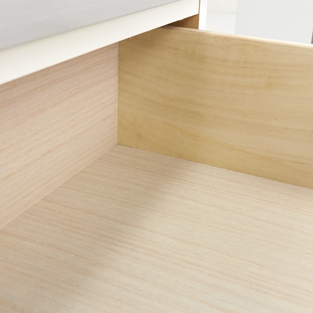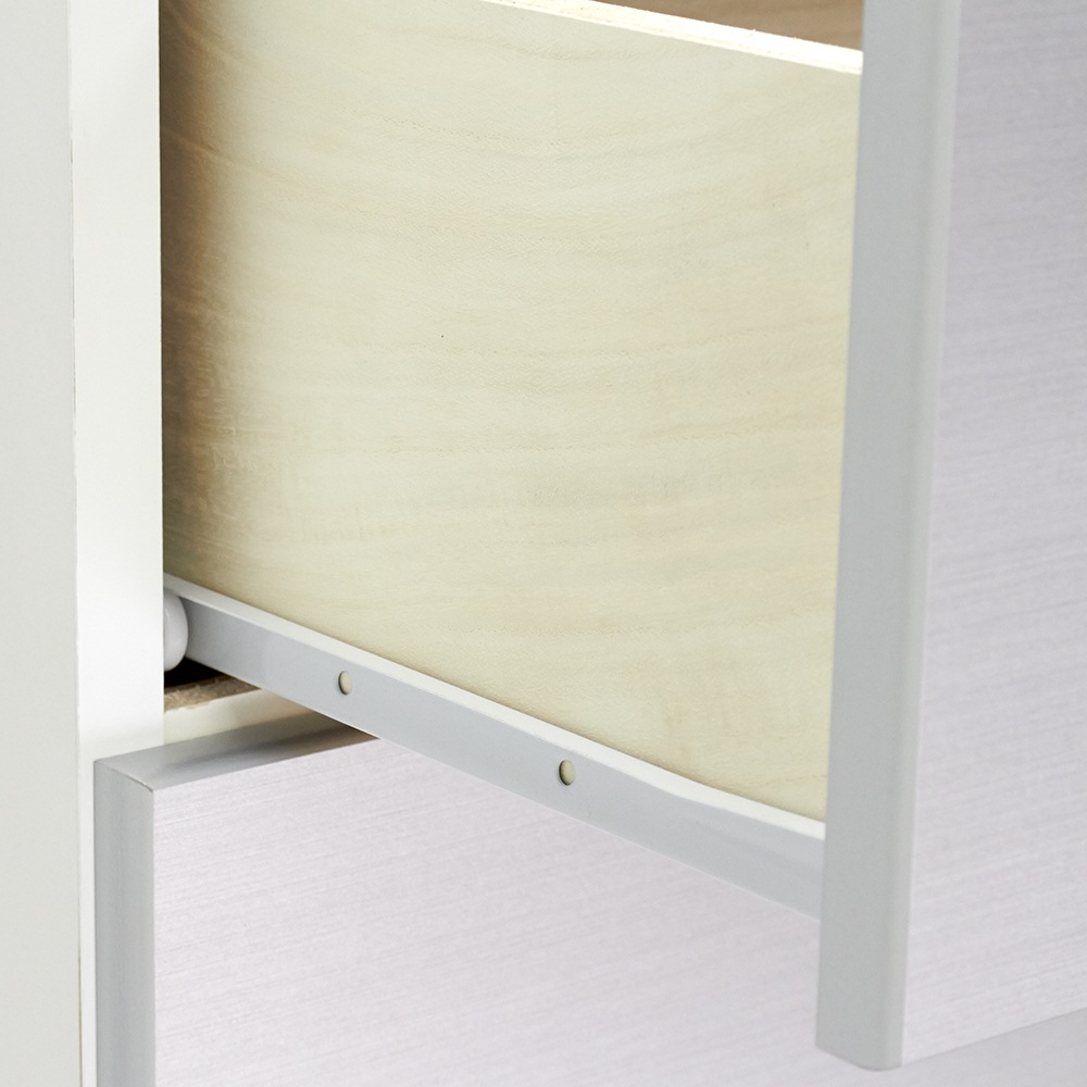 引き出しはストッパー付きレールで出し入れしやすい仕様です。