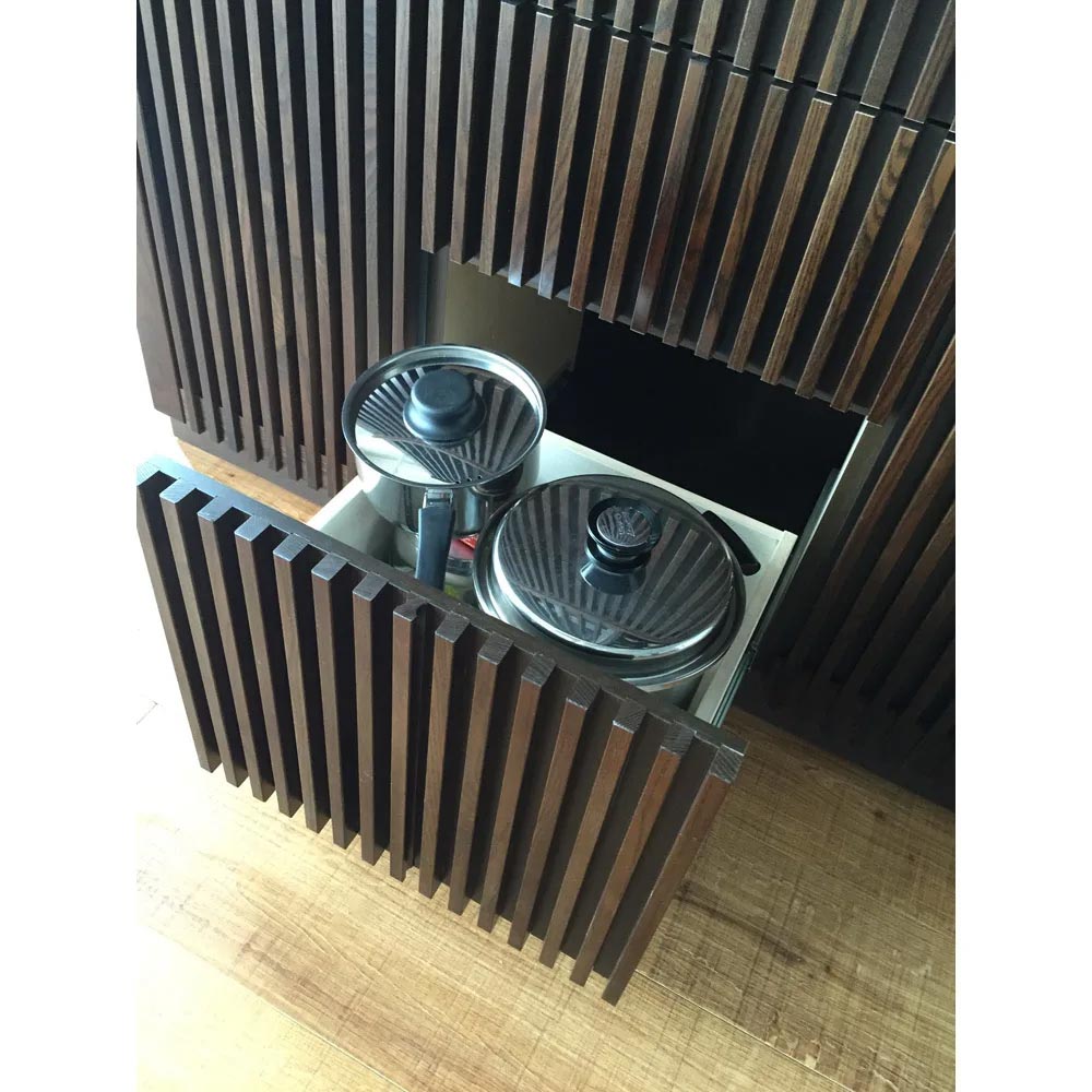 存在感を放つ、豪華なキッチン収納です。