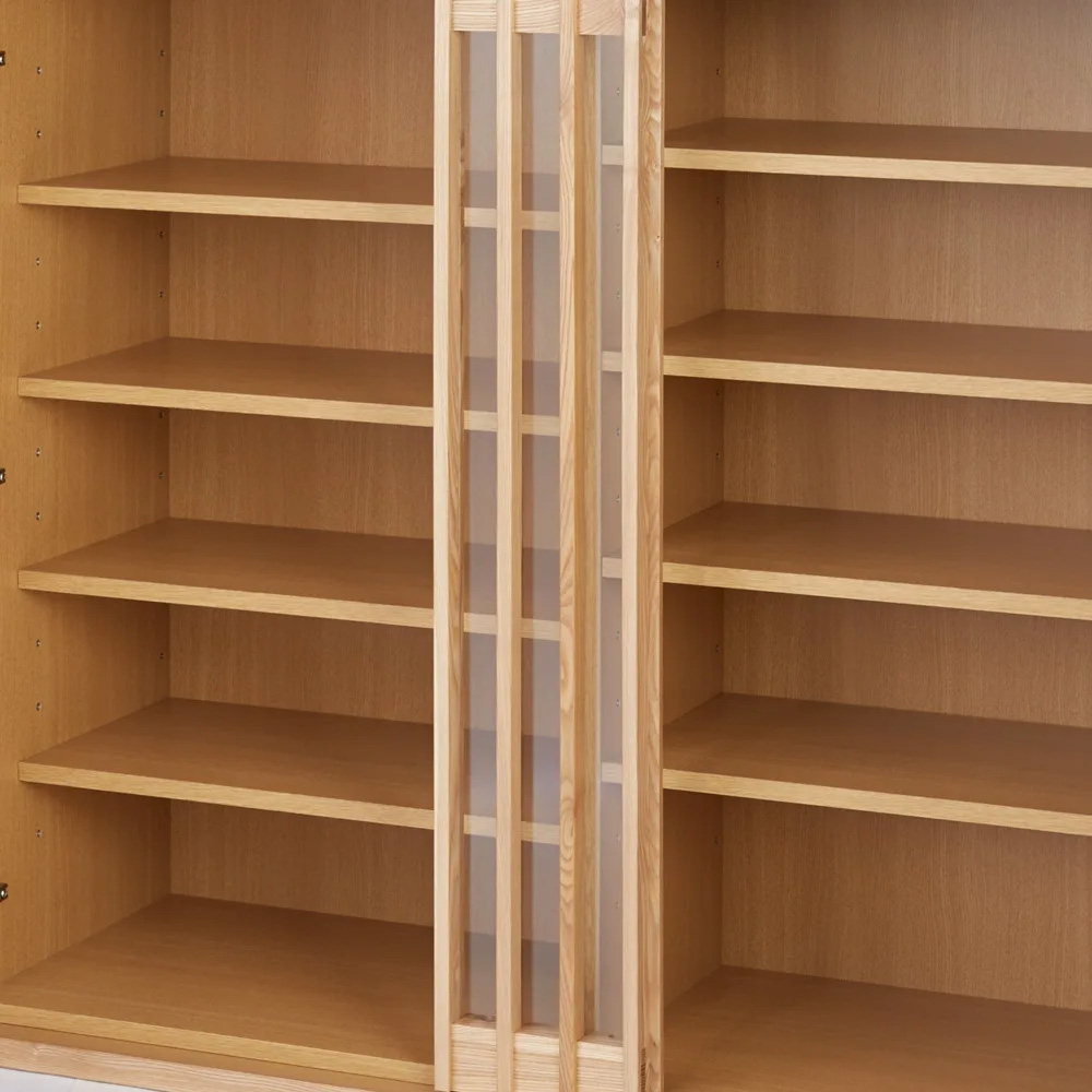扉内部は収納物の高さに合わせて、3cm間隔で棚板の高さを変更できます。