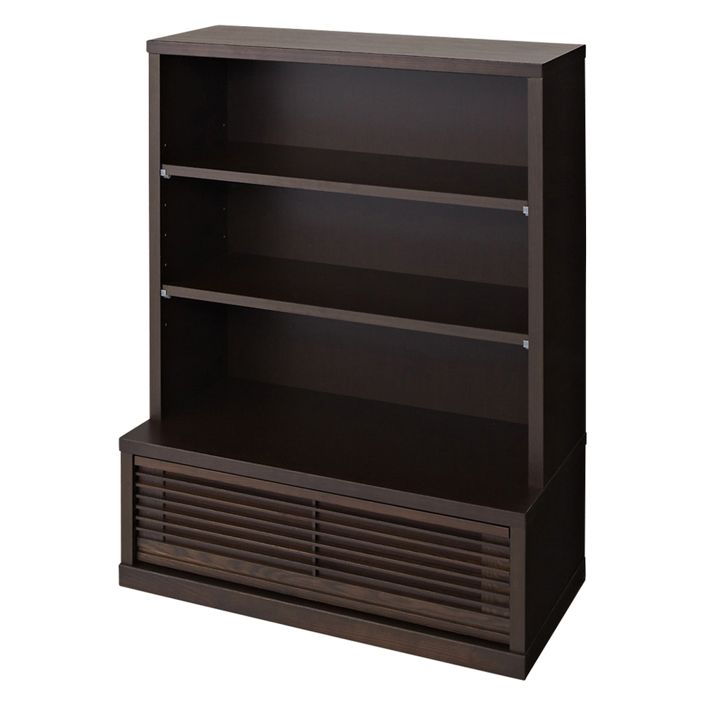 美しいタモ天然木の質感と格子の和モダンデザインが格調高い日本製の書棚。上質な書斎・ホームオフィスが実現する引き出し収納付きのブックシェルフです。タモ天然木を用いて格子デザインを施しました下引き出し部分の前面にはタモ天然木を使用。日本ならではの格子デザインに仕上げました。立体的な木目の質感と人気の格子デザインが美しくマッチしています。収納部分にもこだわりが沢山棚部分の棚板は奥行27.5cmで大判の書籍も収納可能。棚板は6cm間隔で高さ調節が可能なので、本や収納物に合わせていつでも変えられます。引き出しは頑丈な箱組仕様でフルスライドレール付き。奥まで出し入れもスムーズ。棚収納と引き出しが両方備わった、機能性の高い本棚です。国内の職人が1点ずつ手作りで仕上げています熟練の職人の手によって作られる商品は、温かみを感じられ、美しい仕上がりに思わず見入ってしまいます。安心の日本製だから長く愛着を持ってご使用いただけます。サイズは幅60、80、100cmでロータイプ/ハイタイプから選べます。幅違いのものを横に並べても◎畳のある和室にも、モダンなリビングにもぴったりです。こだわりのお部屋に和モダンの要素を加えてみませんか。