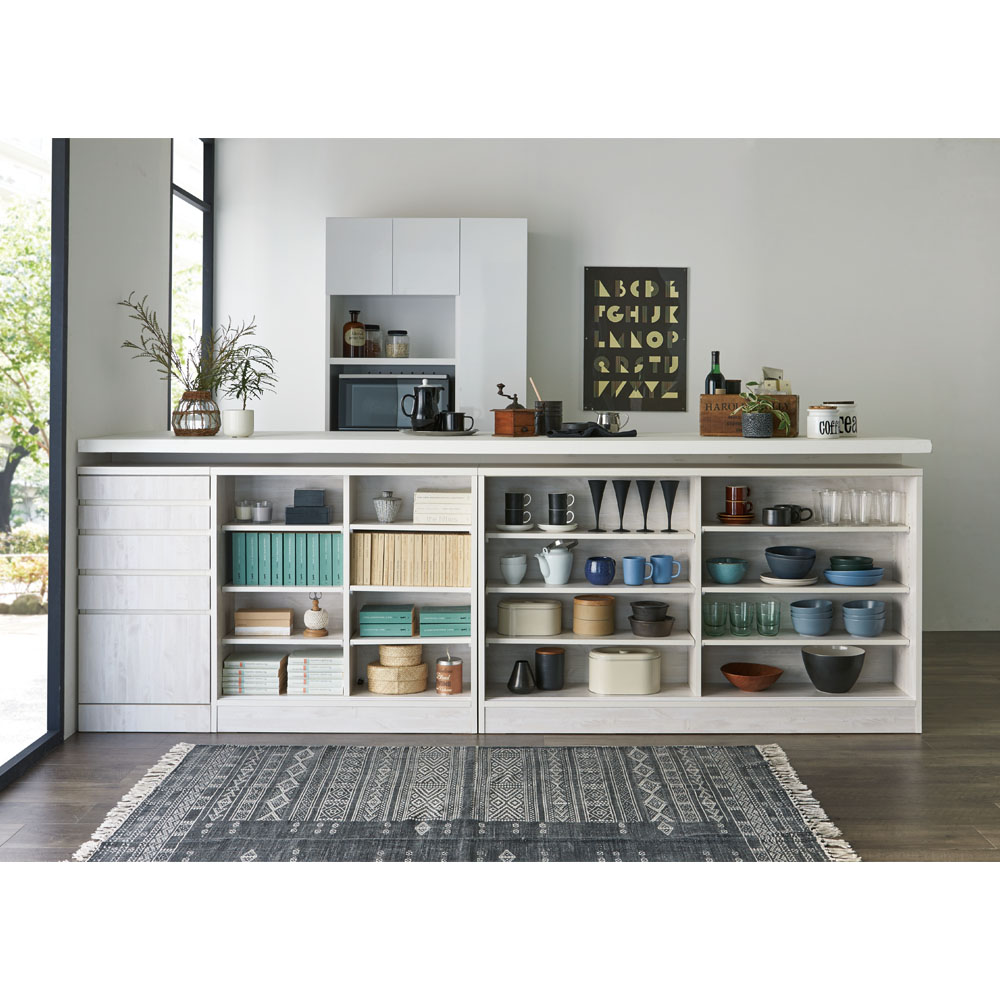 キッチンカウンターの下を、備え付けのような収納空間にすることができます。※扉を外して撮影しています。