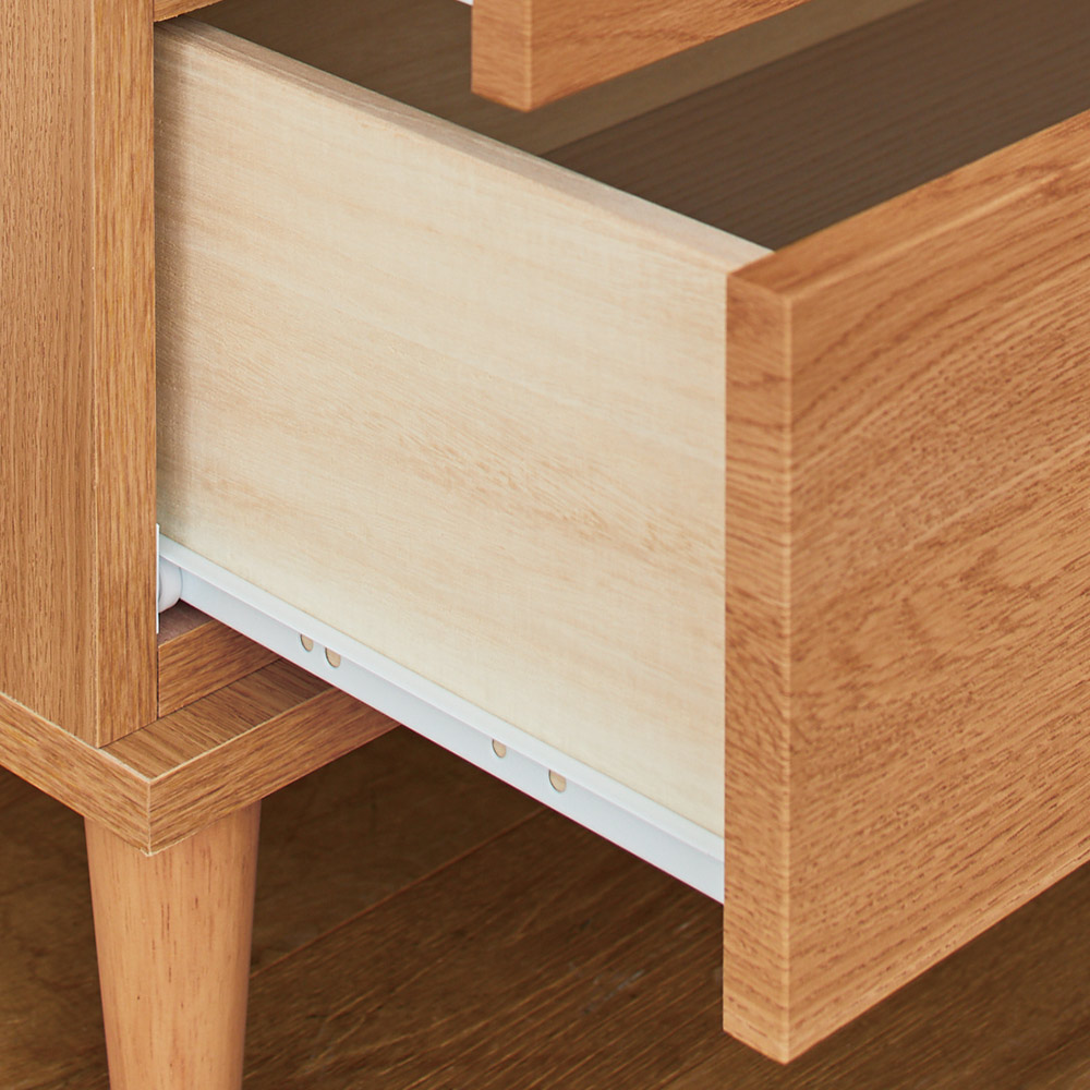 引き出しはストッパー付きレールで、開閉スムーズ。
