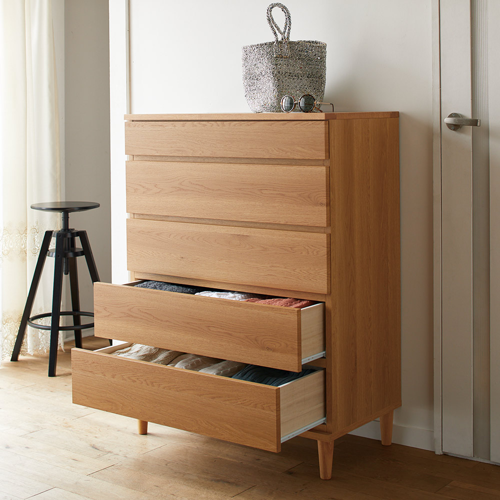 どんどん増えるアクセサリーも洋服もまとめて収納できるチェスト。毎朝の支度の時短にも役立ちます。北欧テイストでナチュラルな空間にもフィット。見やすく、取り出しやすく、お洒落に収納。北欧ジュエリー収納付きチェスト。◆どんどん増えるアクセサリーの収納場所に困っていませんか?◆増えていくジュエリーも洋服も、まとめて収納できるチェストです。天板にオーク天然木を使用した北欧風デザイン。◆天板の木枠にはオーク天然木を使用し、木目調の温もりのある表情でナチュラルな空間にもフィット。◆1段目はアクセサリー収納として。 収納部の内張りには淡い色合いの起毛素材を使用し、アクセサリーを優しく守ります。◆アクセサリー収納部は天板がガラス張りになっているのでディスプレイとして美しく飾れます。 見やすく取り出しやすいというメリットもあります。◆引き出しはストッパー付きレールで開閉もスムーズ。◆お部屋のインテリアの邪魔をしない、シンプルで長く使えるデザインです。◆高さ89cmのロータイプ・108cmのハイタイプの2サイズ展開、 4段タイプと5段タイプの2タイプからお選びいただけます。国産の安心して使える素材を使用しています◆国内の家具工場で職人がひとつずつ丁寧に仕上げました。◆国産品ならではの高品質をお楽しみください。◆脚部を取り付けるだけで、届いたその日からお使い頂けます。新築やリフォーム、模様替えの時にもおすすめの逸品◆お引越しや模様替えのタイミングでスペースを便利に有効活用してみませんか?◆あと少し収納場所が足りないというときに追加するのにおすすめの商品です。