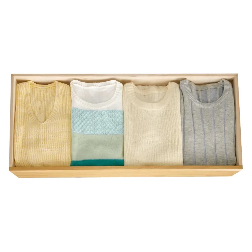 引き出しにはシャツやニット等4列に並べても収納でき、たとう紙も折らずに入ります。(引き出し内寸幅92.5cm奥行38cm)