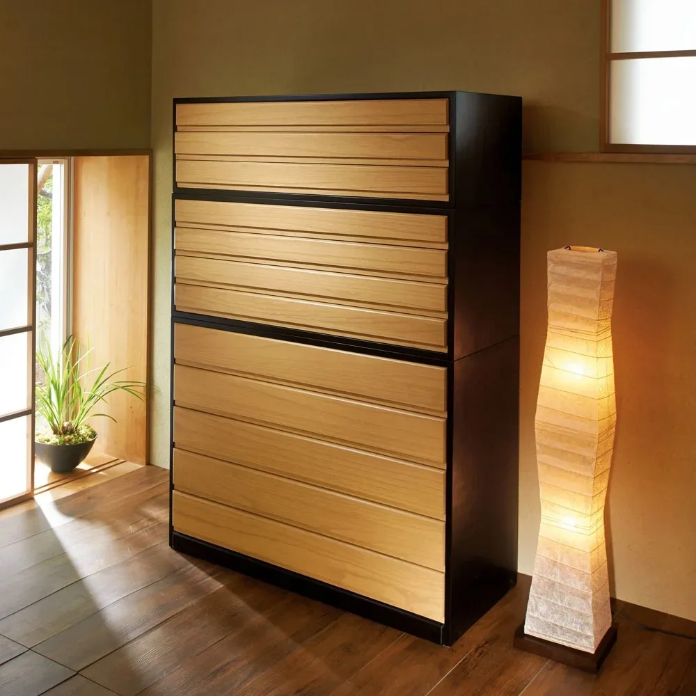 現代和モダンと伝統的な桐収納の魅力が詰まった衣類収納タンス!デザイン性の高い佇まいで、着物から普段着まで収納可能。ユニット購入すれば収納量を重ねて増やしていける収納力も魅力です。日本伝統の桐素材と現代和モダンが融合した総桐タンス●素材は細部にまでこだわった総桐仕様。桐天然木にウレタン塗装をし、ツヤ感のあるデザインを採用しております。●ウレタン塗装を施しているため、汚れにも強く手垢あかも付きにくく丈夫なので、長くお使いいただくことができます。●大切な衣類を長く使い続けたい方に、この総桐、国産桐タンスは収納はおすすめです。●桐の機能性を保ちつつも、現在の住宅に馴染む、「昔ながらの桐ダンス」らしくないデザイン性もおすすめポイント。●ユニットでの積み重ねも可能で、桐の収納ではなかなか難しい「気軽に買い足しができる」収納シリーズです。衣類収納タイプ●衣類収納タイプは4段・5段・6段の高さから、必要収納量や用途に応じて選んでいただけます。●引き出しの内寸はサイズは幅92.5cm、奥行38cm、高さ10.5cmとなっております。●引き出しには一般的なシャツやニット等なら4列に並べても収納できます。●ウール等の天然素材の収納としてもおすすめです。着物収納タイプ●着物収納タイプは3段・4段・5段の高さから、必要収納量や用途に応じて選んでいただけます。●引き出しの内寸はサイズは幅92.5cm、奥行38cm、高さ6cmとなっております。●たとう紙も折らずに入ります。熟練の職人が細部まで丁寧に仕上げた日本製です。●江戸時代から続く有名家具産地、駿河の職人が丹精を込めて作っております。●完成品でお届けしますので、届いたらすぐにお使いいただけます。●総桐かつ和モダンなデザインで、どんなお部屋にもマッチします。和室はもちろん、洋室にもおすすめの商品です。●ユニット式なので買い足しもできます。※お好みで3段まで積み重ねが可能です。但し、衣類収納タイプは下段のみで、中段・上段には使用できません。