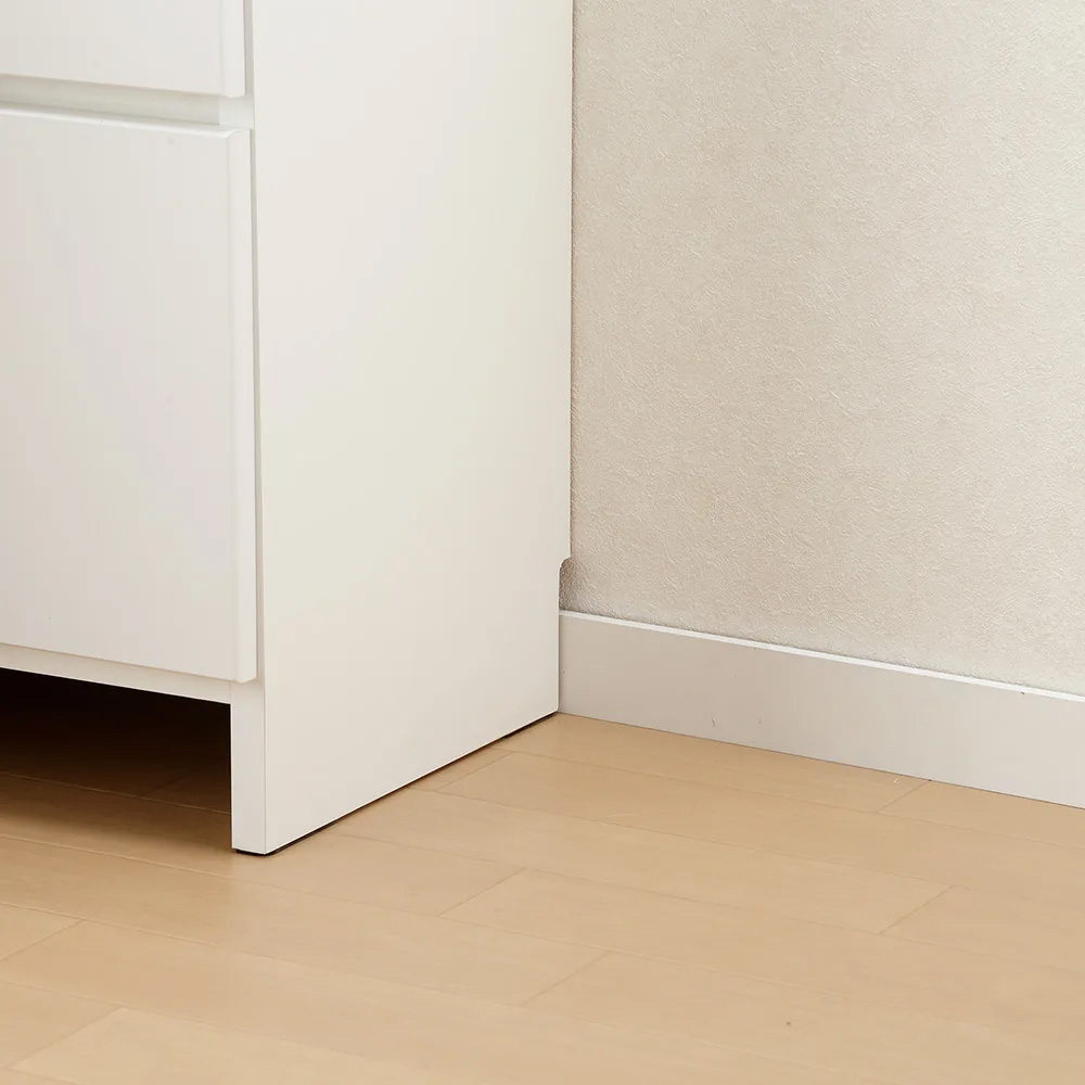 背面下部には幅木よけカット(1×9cm)が施してあり、壁にすき間なくぴったりと設置ができます。