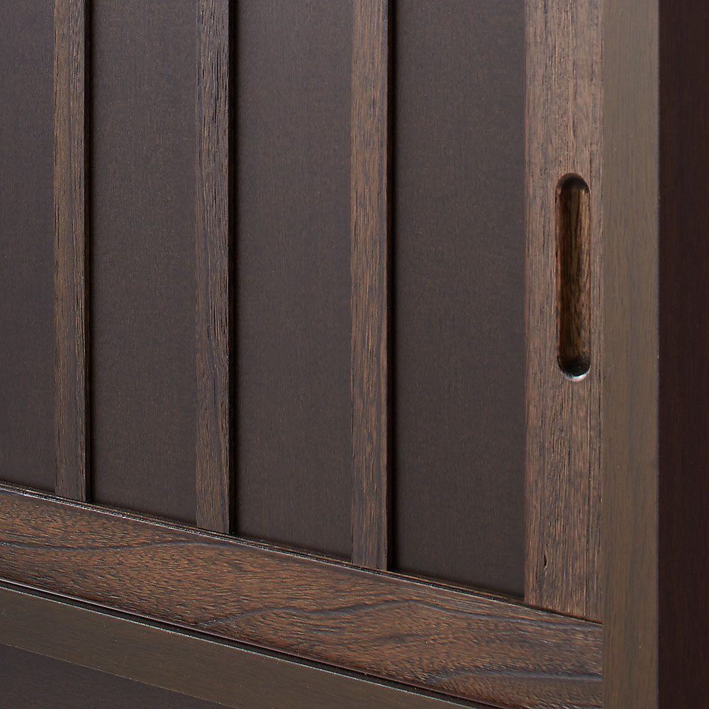 和モダンデザインの美しい木目の質感と格子が際立つ、国産の水屋箪笥。〜立体的な木目の質感と人気の格子デザインがマッチ〜●古民家風デザインがおしゃれな引き戸式食器棚。●格子が美しいガラス扉の収納部は、飾り棚としてもおすすめです。●丈夫な箱組引き出しなど、国産ならではの丁寧なつくりが際立ちます。〜ほどよい高さと使い勝手の良さにもこだわりました〜●収納部は出し入れがしやすく、開閉に場所を取らない引き戸式です●幅90cmのワイドタイプで、収納力も十分です。〜暮らしに合わせて選べる7タイプ〜●幅、高さ、使用方法などに合わせて選べる7タイプをご用意しました。●古美術や本、CDなどのコレクションを上品に飾ることもできます。●憧れの古民家テイストを取り入れた、素敵なお部屋ができあがります。桐 うづくり仕上げ木の表面を磨きながら削ぎ落として木目に凹凸を付け、年輪が浮き上がった美しい表情に仕上げます。立体的な木目の質感と人気の格子デザインが美しくマッチ。引き戸と引き出しが備わった実用性も魅力です。●和風な雰囲気がおしゃれな引き戸食器棚や飾り棚としておすすめです。●高さも86.5cmと低くコンパクトな仕上がりなので圧迫感がありません。