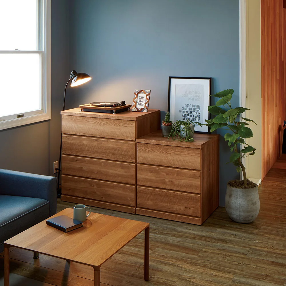 使用イメージ(イ)ブラウン リビングにも和室にもなじむ上品なデザインです。 ※写真左から4段・高さ86.5cm幅80cm奥行55cmタイプ、3段・高さ67cm幅60cm奥行55cmタイプです。