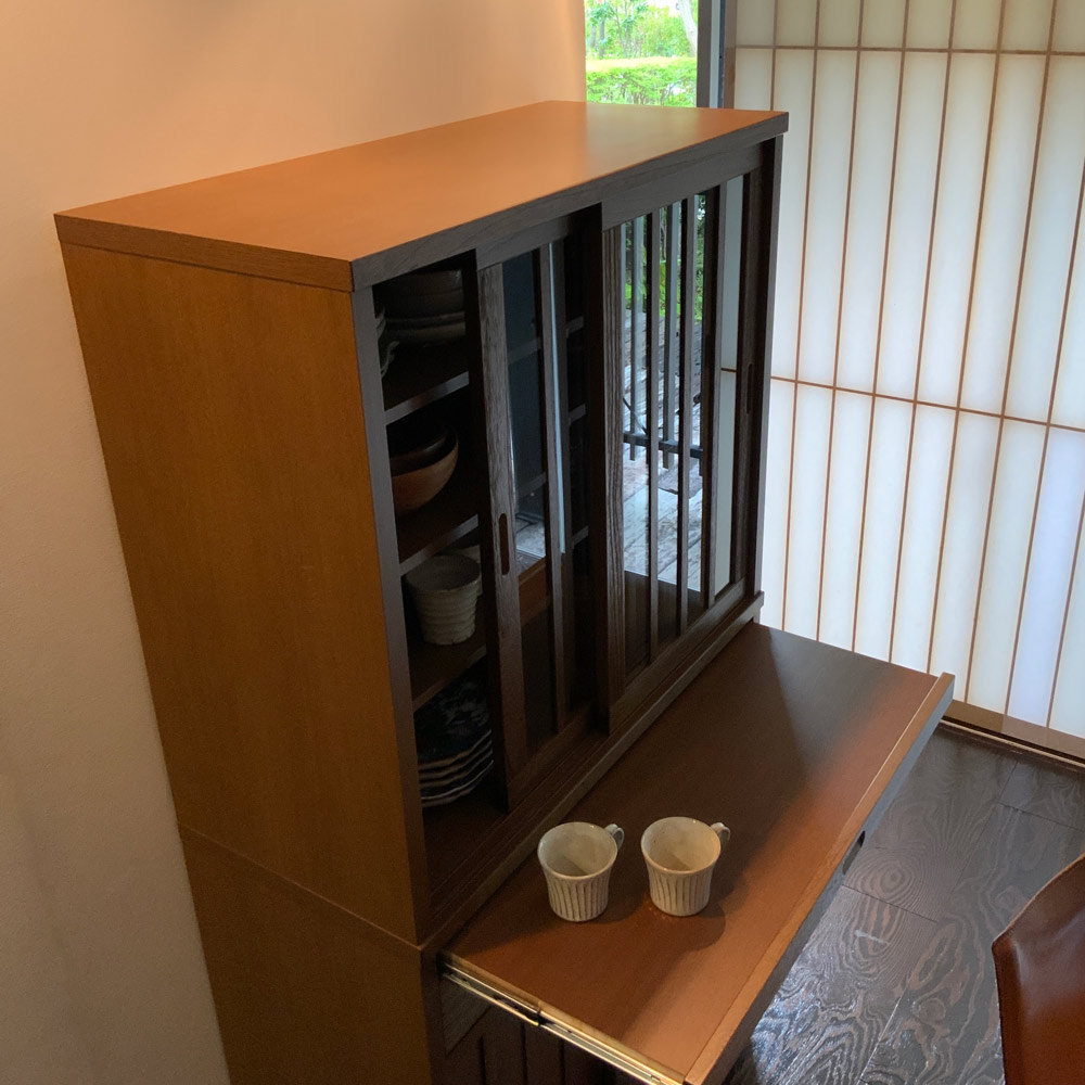 (イ)ブラウン 食器だけではなく、思い出の置物や本、CDやDVDなども収納できるデザイン。