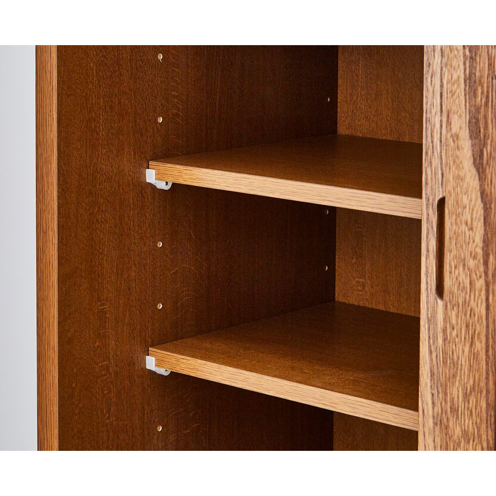 (イ)ブラウン 引き戸なので開閉スペースをとりません。棚板は6cm間隔で調節可能。