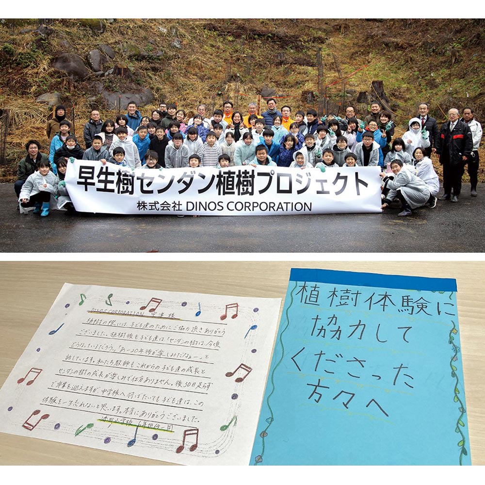 (協)福岡・大川家具工業会が携わるセンダン植樹活動にディノスも参加。植樹には地元の子どもたちも参加し、楽しい思い出を作りました。