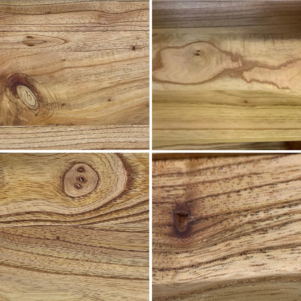 センダン天然木には生きてきた証の様々な節が多くあります。大きな節の穴はパテ処理していますが小さい節の穴は風合いを残すためそのままにしてある場合があります。予めご了承ください。