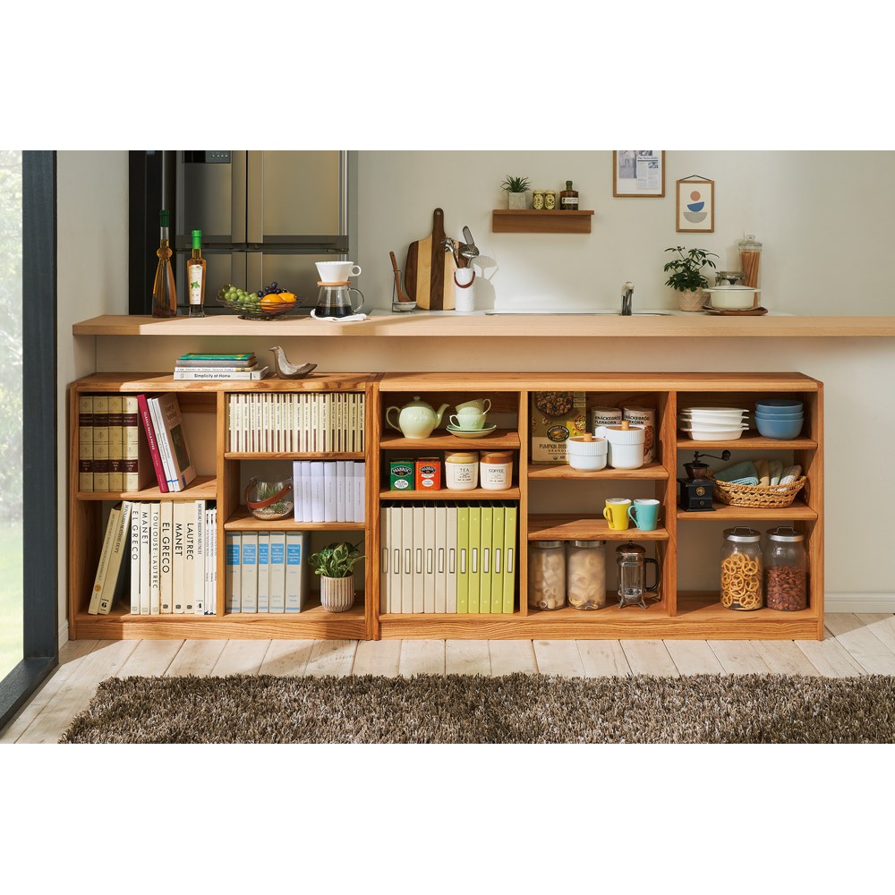 ディノス家具で守る、日本の山と木と森。国産早生広葉樹センダンで未来へつなぐ無垢の家具。長く使えて暮らしに自然と溶け込む、サステナブルなブックラック。日本の木を使い環境に配慮した天然素材のブックラックデザインと機能性ををプラス・ジャパニーズ・マホガニーとも称される自生木の国産材センダン無垢材を使用。・家具職人が丁寧に仕上げた、使うほどに味わいの増すブックシェルフです。・角を斜めにカットしたスタイリッシュなテーパード加工。・書棚やリビングボード、カウンター下収納としておすすめです。 ・棚板はたわみにくい厚さ2cmのセンダン無垢材。すべて可動棚で同寸法。3cm間隔で棚の高さを調節でき無駄なく効率的に収納できます。・自然オイル塗装を施し天然木ならではの経年変化も楽しみです。Designer IKASAS DESIGN(イカサデザイン) 佐々木 章行中国上海を拠点に国を超えた展開を広げています。日本ではグッドデザイン賞、海外ではデザインのオスカー賞とも言われるIFデザインアワードを受賞。国産早生樹センダンの家具を使うことでSDGsに貢献センダンの家具を使うことで林業に携わる人、家具をつくり提案する人、使う人がつながり山を守るサステナブルなサイクルが回り始めます。国産材センダンを家具に使う3つの理由国産材でできた日本の家具は実は少ないという現実。日本の家具業界は輸入材への依存度がとても高いのが現状です。輸入材は調達しやすく家具に適した硬さで加工性に優れ木目が美しい樹種が多く利用しやすいのがその理由です。ところが、新型コロナウィルス感染症や世界情勢の影響で木材の輸入が滞るウッドショック、さらに円安等で価格高騰に見舞われ輸入材の供給は不足しています。(1)15年〜20年で活用できて強度があり家具に向いている国産の広葉樹。センダンは広葉樹でありながら成長が早く針葉樹の杉・檜と比べて1/3の早さで伐採できます。針葉樹と比較しても十分な強度があるため家具の材料にも向いています。(2)地域の林業や周辺の産業の活性化につながる。林業従事者の世代を跨がず伐採でき林業のサイクルを早めることで活性化につながります。植樹を行い活用を進めることで日本の林業活性化への貢献も期待されています。(3)CO2削減や山を守ることに寄与するサステナブルな木センダンはCO2の吸収量が多くセンダンを植樹し活用することで地球温暖化対策にも期待。カーボンニュートラルにも貢献するサスティナブルな木材です。また定期的に伐採と植林をすることで山の手入れが行き届き自然災害の軽減にもつながります。魅力あふれる次世代の国産材をまずはディノス家具で近年ウッドショックにより良質な木材を安定的に入手することが困難になってきています。特にセンダンは現在、天然の自生木しかありません。木材市場への供給量が少ない非常に希少な木材です。そのため一般家庭向け家具の大量生産が難しくあまり馴染みのないセンダン家具ですが公官庁や企業のショールーム、注文住宅などの建具や1点モノの家具として最近多く使われはじめてきました。天然モノのセンダンは育った環境により木目、節、色見が一つ一つ異なります。それも個性として廃棄せずに出来る限り材料を無駄なく使用した環境へ配慮しおしゃれなブックラックに仕上げました。ディノスがいまできること(1)植樹活動に参加センダンを積極的に活用し持続可能なサイクルを構築するため、「うえる、つくる、つなげる」をキーワードに、日本有数の家具の産地である福岡県大川市の協同組合福岡・大川家具工業会が携わるセンダンの植樹活動に参加しています。(2)国産材の価値をつたえる「山を守り、未来へとつなぐ」をテーマとして、国産早生樹センダンにスポットを当てたサステナブルなモノづくりに取り組みカタログやWEBを通して世の中に国産材の現状や価値を広めていきます。(3)お客様へ届けるディノスではこれまで10年以上にわたり国産の杉やひのき材を活用した日本の木で出来た家具をお客様に提供してきました。今後も継続的に森林循環や林業活動を活性化する試みにも積極的に関わりながらお客様のライフスタイルに寄り添った安心安全で愛着を持って長く使えてSDGs(持続可能な開発目標)につながる国産材の家具をお届けしたいと考えます。
