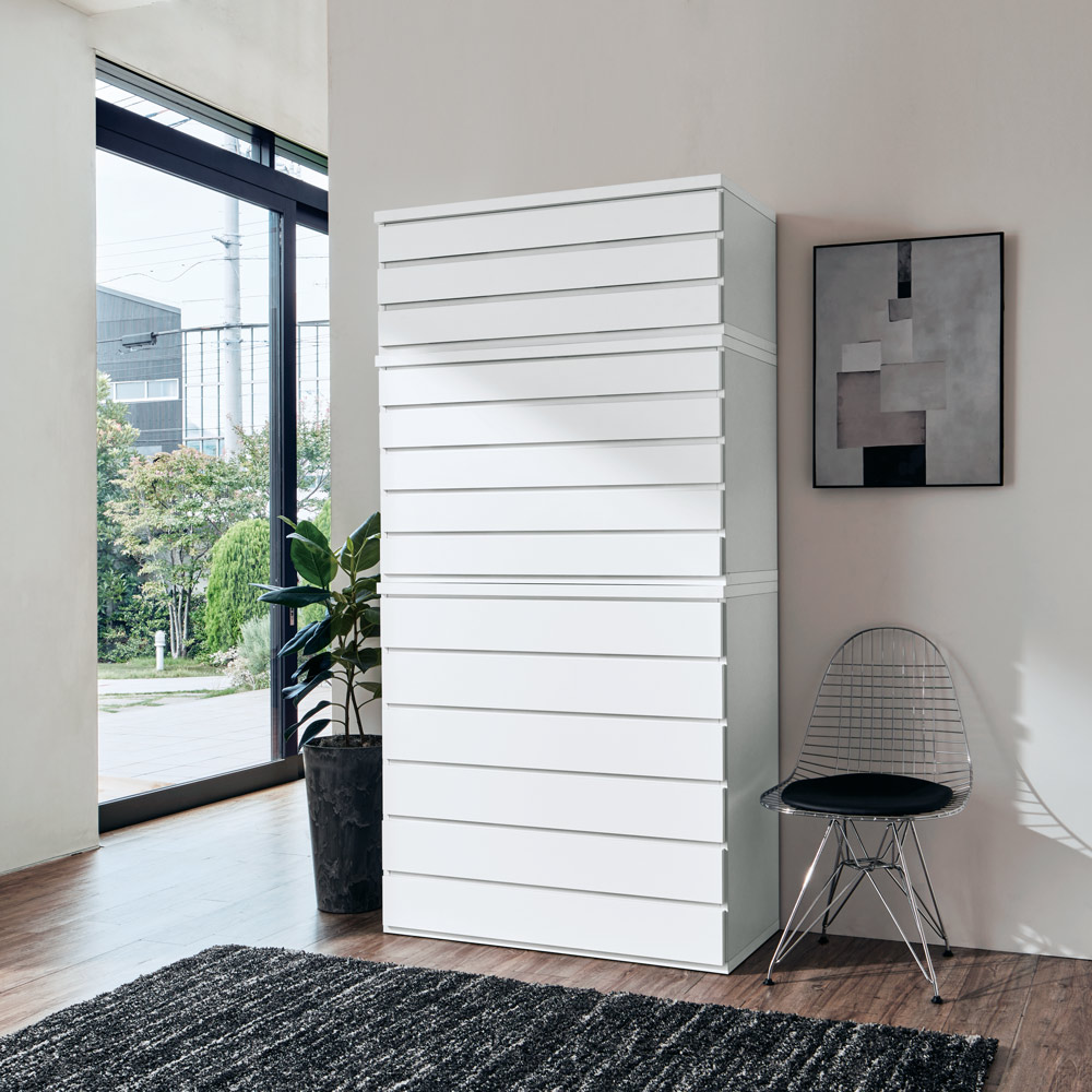 使用イメージ 洋室にも美しく映えるモダンなデザイン。お気に入りの着物も服も大切にしまえます。 ※写真は(上から)別売りの着物収納3段+着物収納5段+衣類収納6段です。