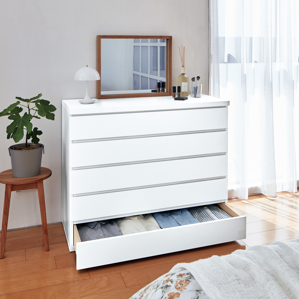 使用イメージ 寝室では衣類はもちろん、かさばるシーツや寝具カバー類の収納にも便利です。 ※写真は別売りの衣類収納5段です。