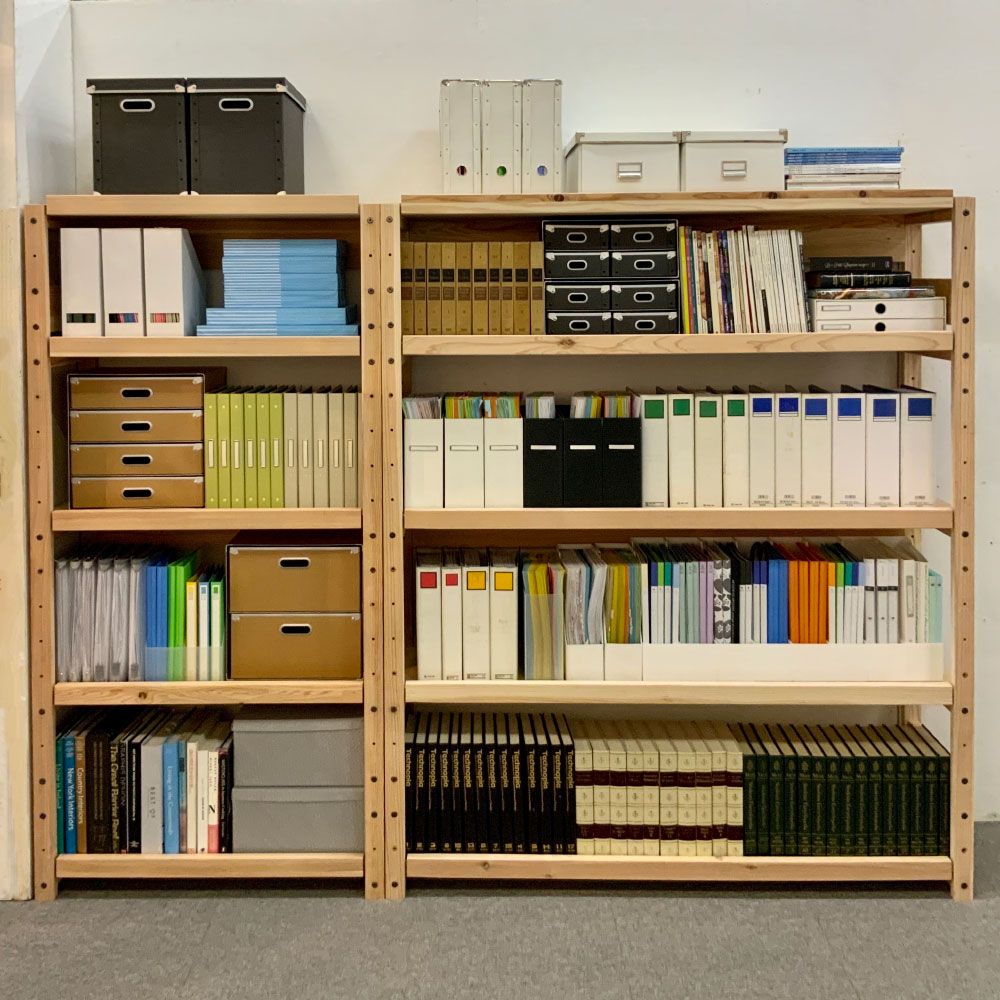 コーディネート例(幅90・幅150) 大量の本や書類もたっぷりと本棚泣かせだった重たい書籍も収納できる約3cm厚の丈夫な棚板。