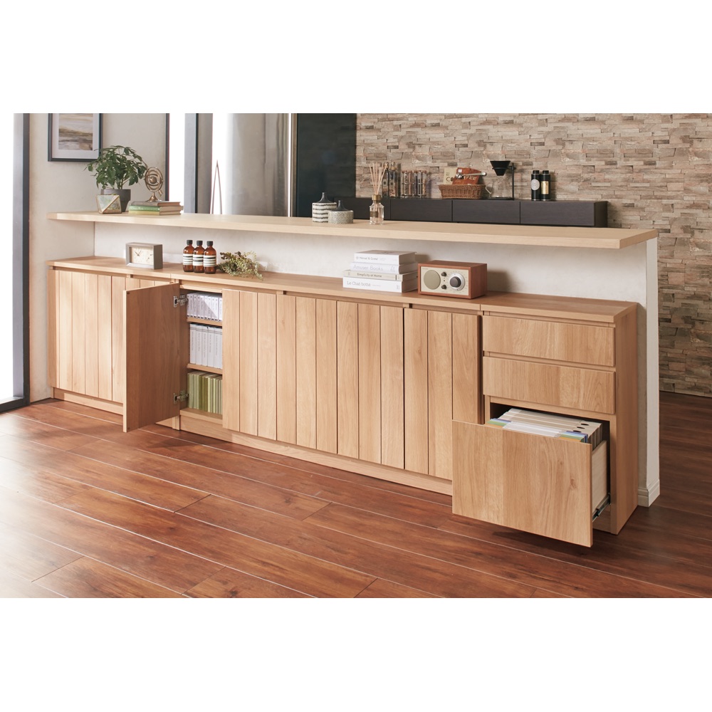 • コーディネート例 ※写真は左から扉幅89.5cm、扉幅148cm、引き出し幅45cm・高さ70.5cmタイプです。