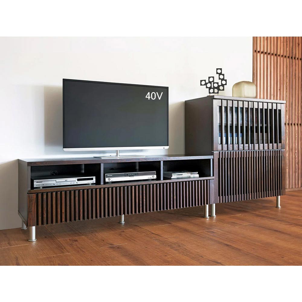 使用イメージ(イ)ダークブラウン 天然木の風合いが和モダンな雰囲気を演出します。 ※お届けはテレビ台幅150となります。