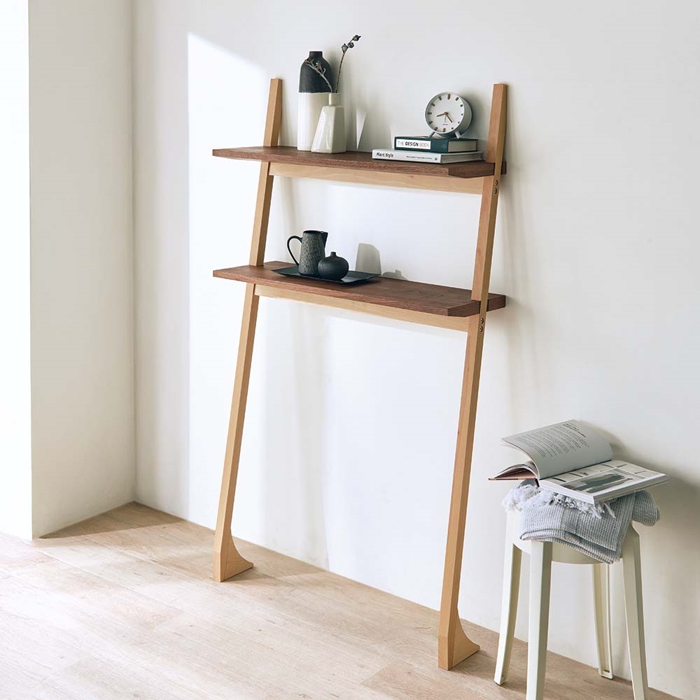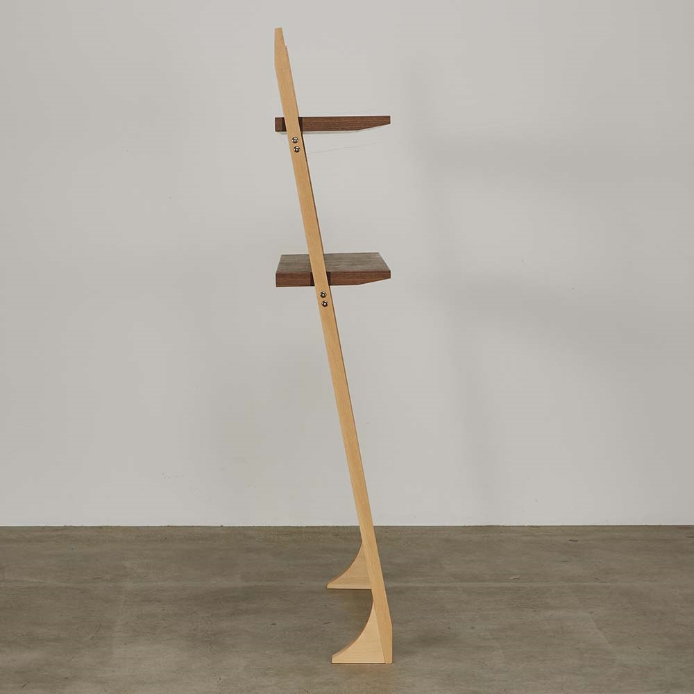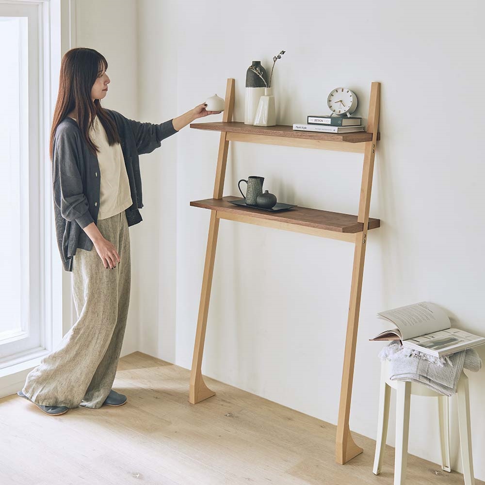 壁に立て掛けるだけの簡単さ。場所をとらずに見落としがちな壁面がお気に入りのディスプレイスペースに。デッドスペースを有効活用できるおしゃれな飾り棚部屋の角をおしゃれな飾り棚に変身させる、シェルフが登場。省スペース設計で、ここに棚が欲しいというときにピッタリ。ナチュラルとバイカラーで選べる、ウォールラックです。誕生ストーリースマートでありながら広く使える奥行きと抜群の安定感。日本は地震が多い国であるため不安定な家具は非常に危険です。「本当に倒れないのですか?」というご質問もありますが、計算され尽くした設計で抜群の安定感を実現しており安心して使っていただけます。設計は東京大学院の若き設計士たちが手掛けており、棚に荷重がかかると壁側に押す力が生まれるため倒れないのです。美しい曲線を描きながらしっかりと床を踏み締める脚ゆるやかな弧を描きすらりと伸びる脚。非常にスリムでありながら本体と収納物をしっかりと支えてくれます。伝統的な家具製造の技術と革新的なアイデアが生み出した今までにない家具「かべかぐ」。重みが壁に効果的に伝わり、安全に自立する緻密な設計がこの美しい脚のフォルムを作っています。家庭での使用はもちろん、店舗や企業、宿泊施設などでも活躍してくれそうなミニマル家具。新築や開店などのお祝いにもおすすめしたい逸品です。デザイナー紹介大井雅人氏がデザインした、飾り棚としてもアイテムが映える美しい木目の棚板。和でも洋でも、いずれのインテリアにもすっと馴染む色合いと質感。素材は世界中から厳選された自然木を使用しツートンカラーでスタイリッシュに仕上げました。デザイン事務所勤めを経て独立、町工場とプロダクトを開始し、2014年のグッドデザイン賞をはじめ多数の受賞歴を誇る新進気鋭のプロダクトデザイナーです。杉本家具昭和47年、静岡県静岡市にて創業された家具メーカー。静岡家具の歴史は寛永11年、徳川三代将軍家光公が静岡市に浅間神社を造営するために全国各地から名工と呼ばれる職人たちを集めたことに始まります。同社もそんな伝統的な技を継承しつつ神棚や仏壇などの製作で技を磨いてきました。それがこのような洗練されたシンプルなデザインに活かされています。そしてシンプルということは素材や技術など、全てにおいてまったく誤魔化しが効かず無駄のない洗練された技が必要なのです。