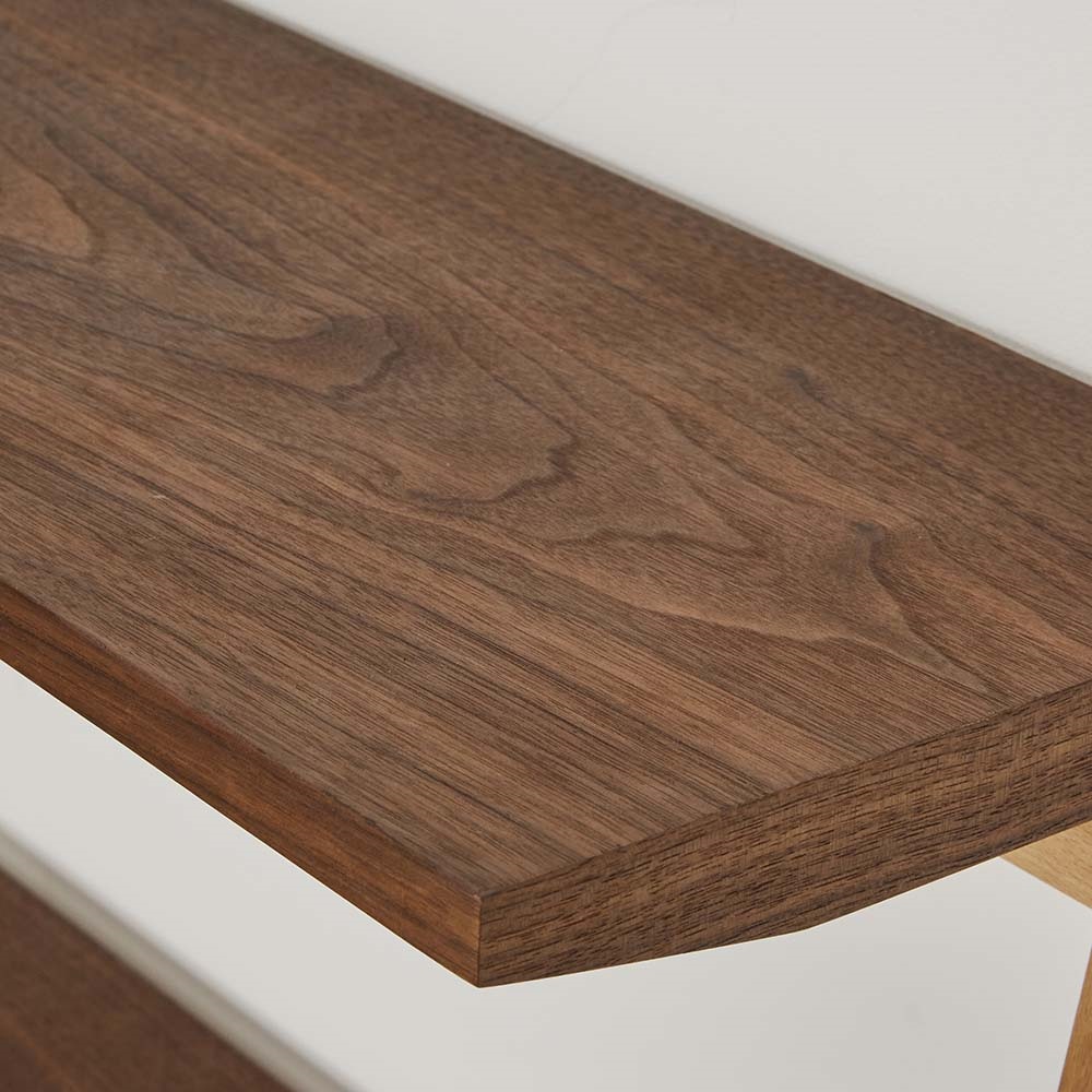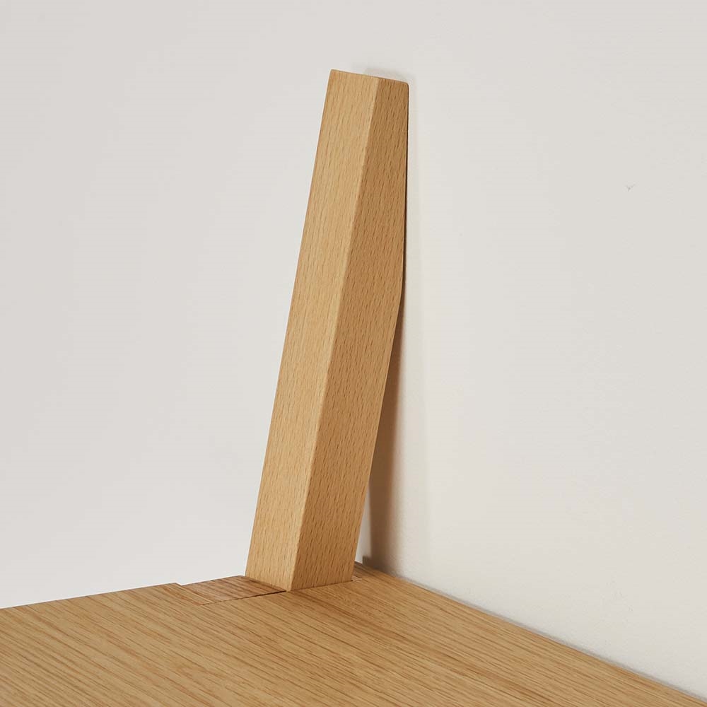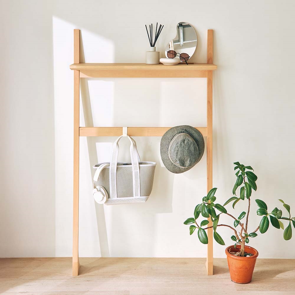 壁に立て掛けるだけの簡単さ。場所をとらずに見落としがちな壁面がお気に入りのディスプレイスペースに。下側のバーにはフックを掛けて帽子やストールなどおしゃれにディスプレイできます。デッドスペースを有効活用できるおしゃれな飾り棚部屋の角をおしゃれな飾り棚に変身させる、シェルフが登場。省スペース設計で、ここに棚が欲しいというときにピッタリ。ナチュラルとバイカラーで選べる、ウォールラックです。誕生ストーリースマートでありながら広く使える奥行きと抜群の安定感。日本は地震が多い国であるため不安定な家具は非常に危険です。「本当に倒れないのですか?」というご質問もありますが、計算され尽くした設計で抜群の安定感を実現しており安心して使っていただけます。設計は東京大学院の若き設計士たちが手掛けており、棚に荷重がかかると壁側に押す力が生まれるため倒れないのです。美しい曲線を描きながらしっかりと床を踏み締める脚ゆるやかな弧を描きすらりと伸びる脚。非常にスリムでありながら本体と収納物をしっかりと支えてくれます。伝統的な家具製造の技術と革新的なアイデアが生み出した今までにない家具「かべかぐ」。重みが壁に効果的に伝わり、安全に自立する緻密な設計がこの美しい脚のフォルムを作っています。家庭での使用はもちろん、店舗や企業、宿泊施設などでも活躍してくれそうなミニマル家具。新築や開店などのお祝いにもおすすめしたい逸品です。デザイナー紹介大井雅人氏がデザインした、飾り棚としてもアイテムが映える美しい木目の棚板。和でも洋でも、いずれのインテリアにもすっと馴染む色合いと質感。素材は世界中から厳選された自然木を使用しツートンカラーでスタイリッシュに仕上げました。デザイン事務所勤めを経て独立、町工場とプロダクトを開始し、2014年のグッドデザイン賞をはじめ多数の受賞歴を誇る新進気鋭のプロダクトデザイナーです。杉本家具昭和47年、静岡県静岡市にて創業された家具メーカー。静岡家具の歴史は寛永11年、徳川三代将軍家光公が静岡市に浅間神社を造営するために全国各地から名工と呼ばれる職人たちを集めたことに始まります。同社もそんな伝統的な技を継承しつつ神棚や仏壇などの製作で技を磨いてきました。それがこのような洗練されたシンプルなデザインに活かされています。そしてシンプルということは素材や技術など、全てにおいてまったく誤魔化しが効かず無駄のない洗練された技が必要なのです。