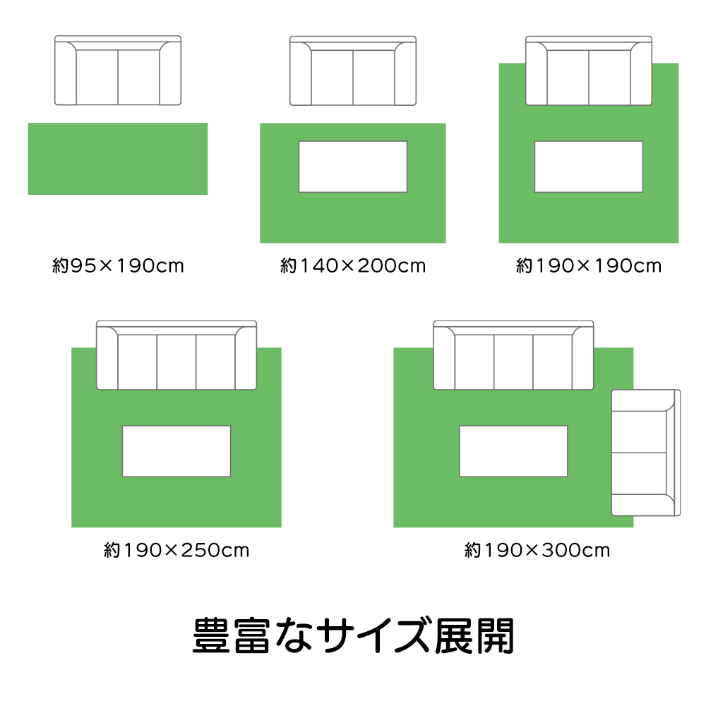 左から(ア)ブラウン系(ウ)ブルー系(イ)グリーン系 ※写真は約95×190cmタイプです。