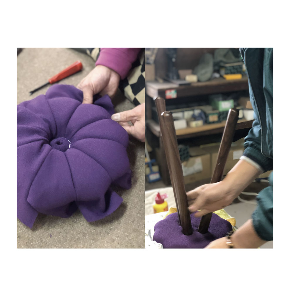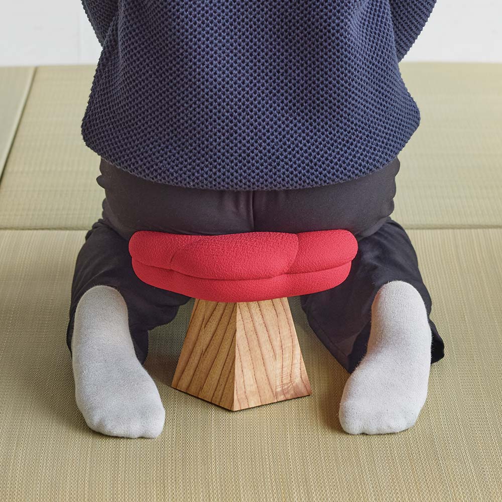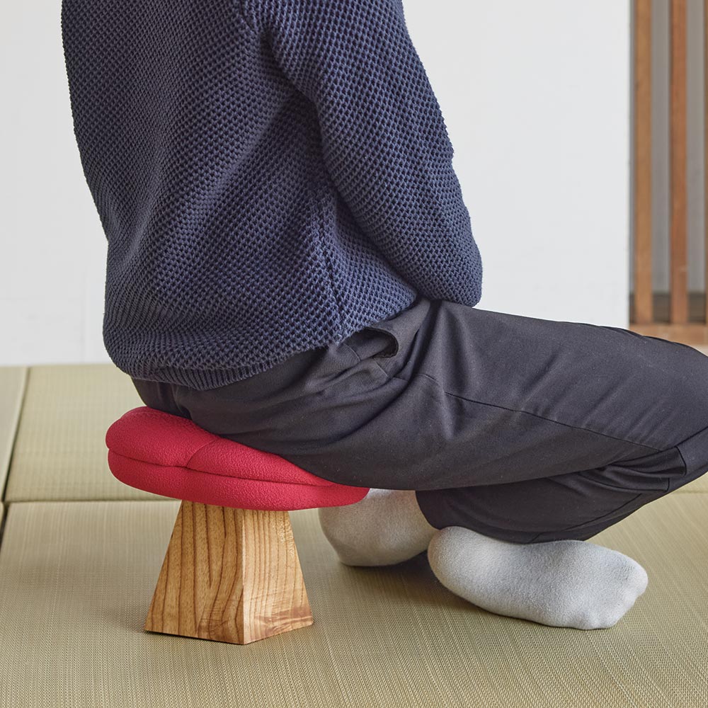 お花みたいな和菓子がモチーフ。食べたいくらい可愛い「梅」の正座椅子。ロースタイルの生活空間に花を咲かせ置くだけで心が和み、暮らしのアクセントに●ちょうど良い高さとクッション性があって正座やあぐらが楽になります。●正座が楽になる秘密は座面手前が低く、奥が高い傾斜構造。座面の傾斜で座った時に骨盤が立ち、自然と楽な姿勢で座る事が出来ます。※座面裏側に掘り込みが施されている方が後方です。●とってもコンパクトだから、使い終わったら座卓の下や壁際に収納できます。座椅子と違ってとっても省スペースで使用できる事も魅力です。●重さは3kg。座面裏に手掛け用の掘り込みが施されているので座りたい場所へ楽に運べます。●ホルムアルデヒドの発生を最小限に抑えた素材(F☆☆☆☆合板・塗料・接着剤)を主材にした商品です。●床生活におしゃれと実用性を兼ね備えた正座子いすです。サステナブルな逸品●脚部にはCO2の吸収力が高いことで注目されている国産天然木のセンダンを使用。●張り地には環境に優しい再生繊維を使用。●歴史ある椅子工場で家具職人がオーダーを受けてから1脚1脚丁寧に作る国産の正座椅子。※オーダー商品のため、キャンセル・変更・返品はご容赦ください。