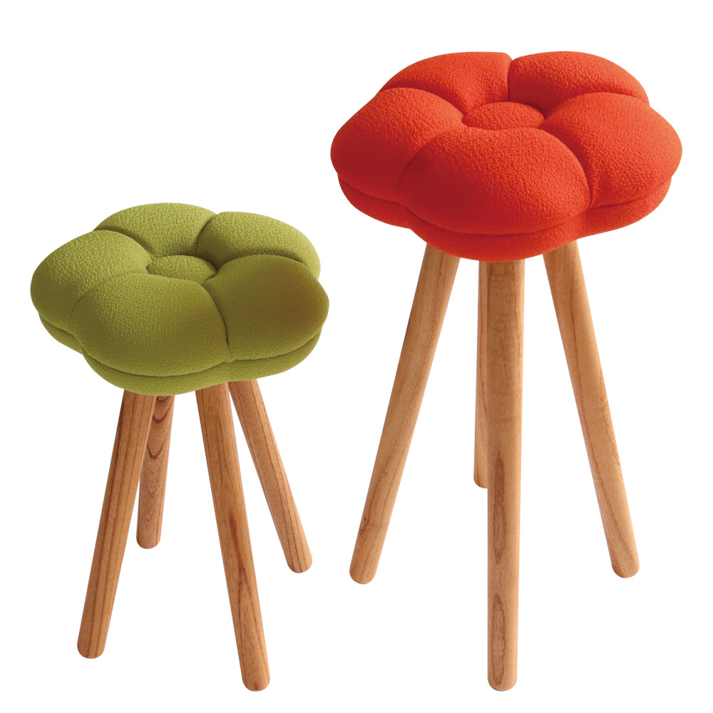 (ア)オレンジ お花みたいな和菓子がモチーフ。食べたいくらいの可愛さのモナカスツール。長く愛着を持って使用できるかわいいサステナブル家具です。