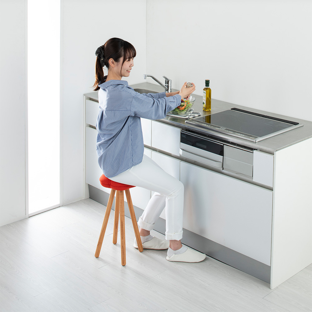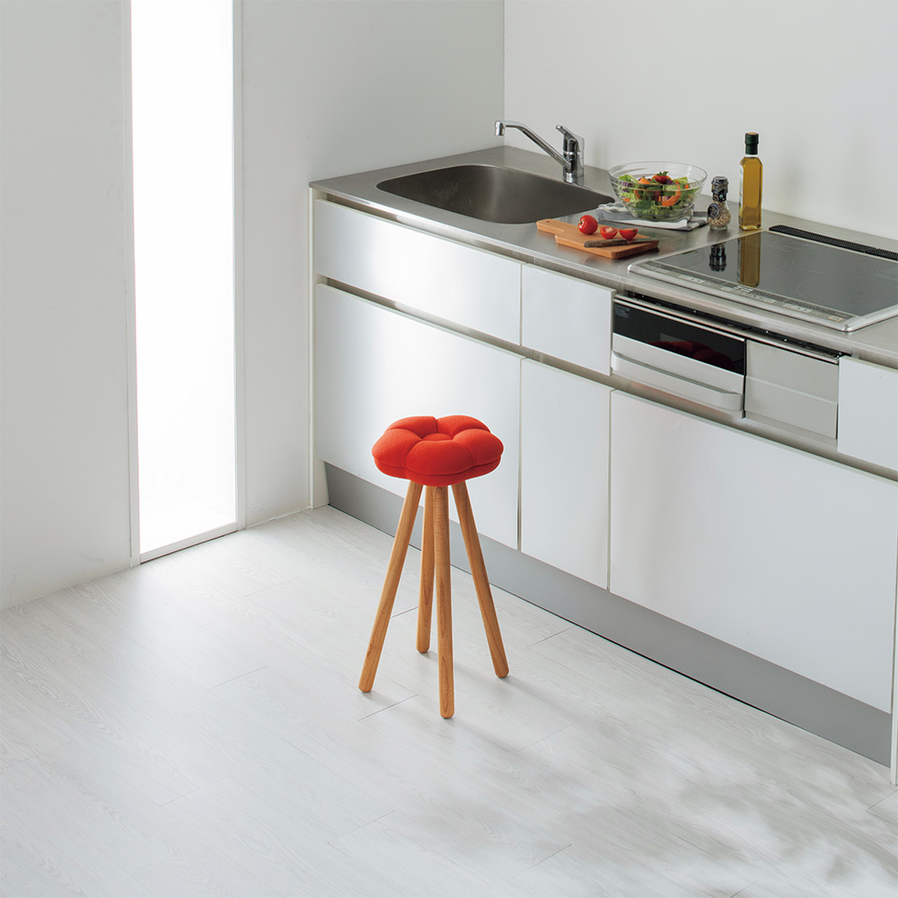 ハイタイプはキッチンカウンターにおすすめです。 ※写真はお届けする商品「モナカスツール椿・ハイタイプ(ア)オレンジ」です。