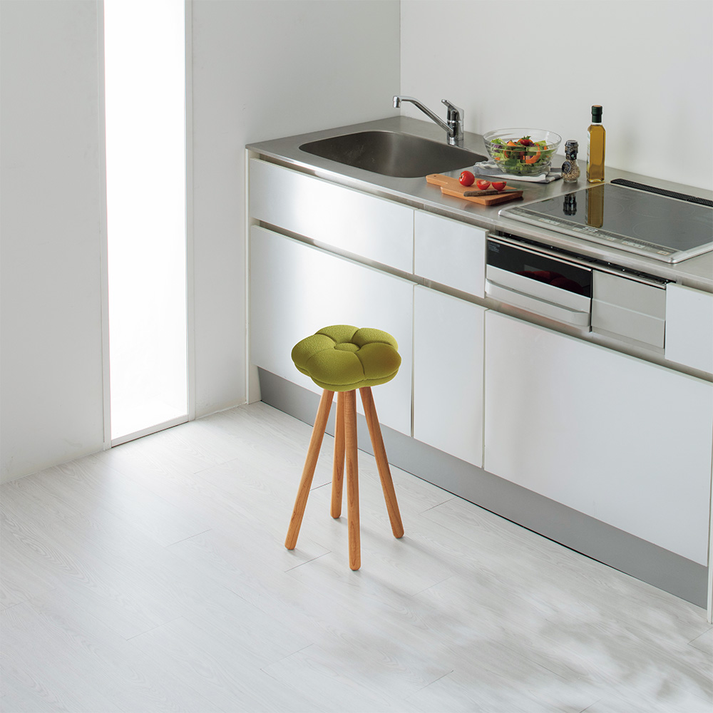 (イ)グリーン お花みたいな和菓子がモチーフ。食べたいくらいの可愛さのモナカスツール。長く愛着を持って使用できるかわいいサステナブル家具です。
