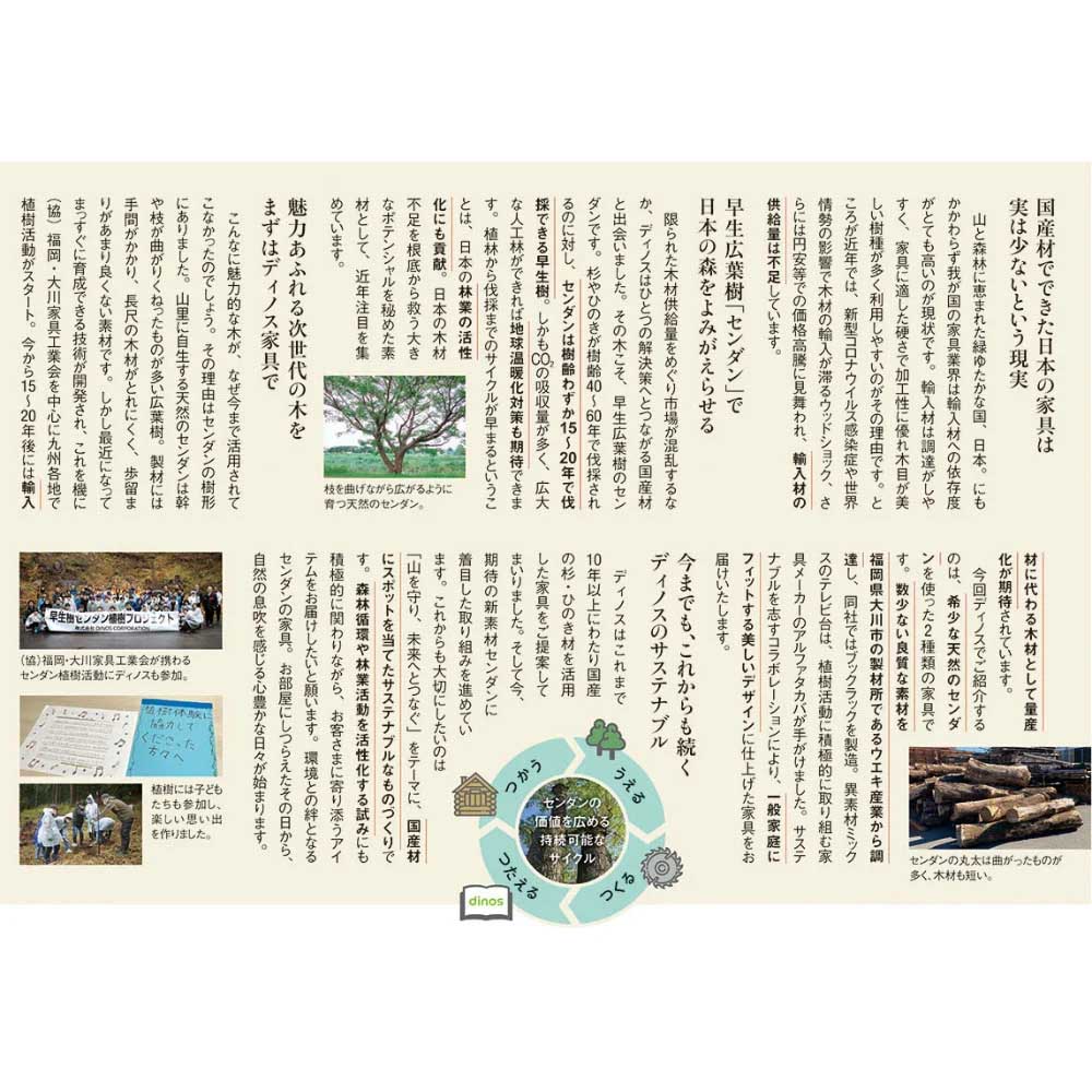 (協)福岡・大川家具工業会が携わるセンダン植樹活動にディノスも参加。植樹には地元の子どもたちも参加し、楽しい思い出を作りました。