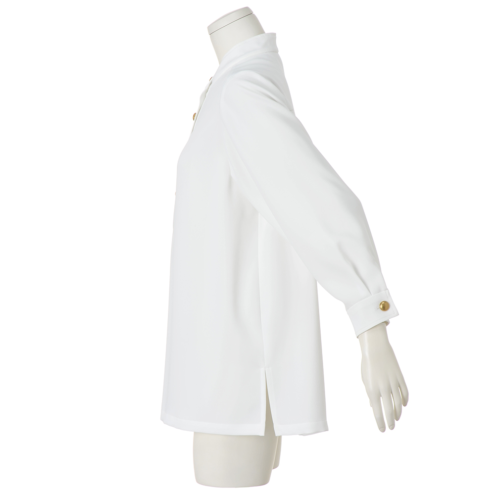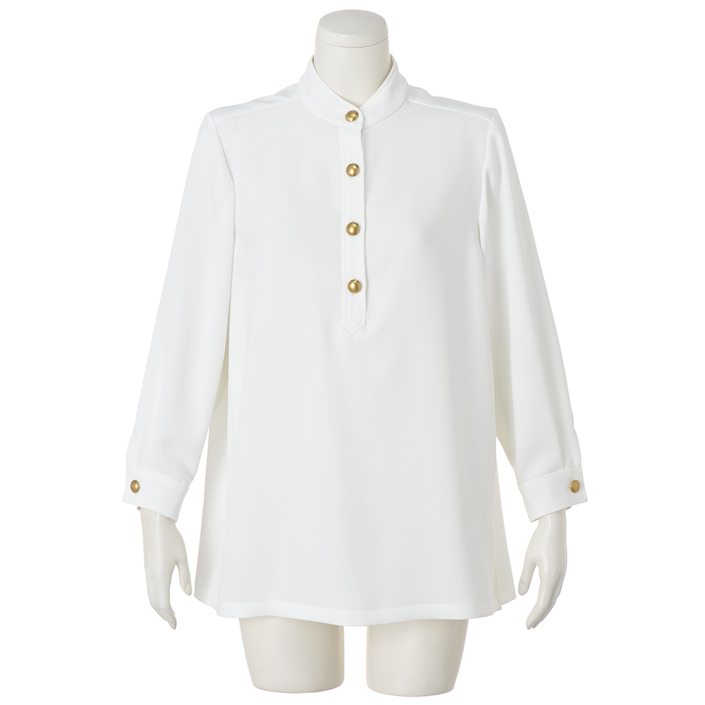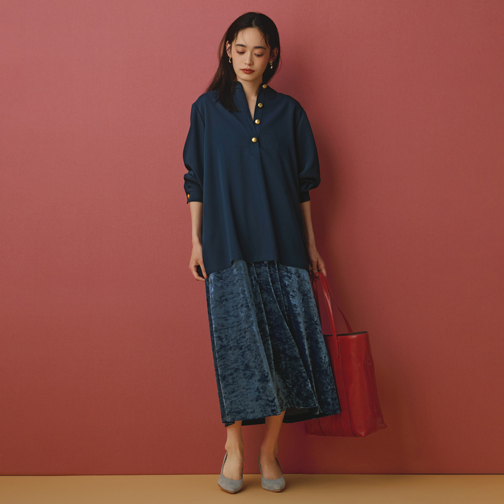 MY FAVORITE ITEMハリと伸縮性があり、程よい厚みで透けにくく、しなやでソフトな風合いが特徴。軽やかな着心地でおしゃれを楽しめます。クラシカルな印象のチュニックは落ち感があり、すっきりとしたシルエットが完成。背中の切り替えやサイドのタックなどで立体感を強調し、長めの丈でヒップまわりをカバー。気になるパーツやからだのラインを隠しつつすっきり着られます。ボタンを開けて腕まくりをするなど、着崩したスタイルもおすすめです。
