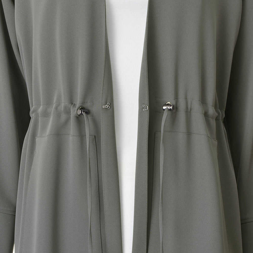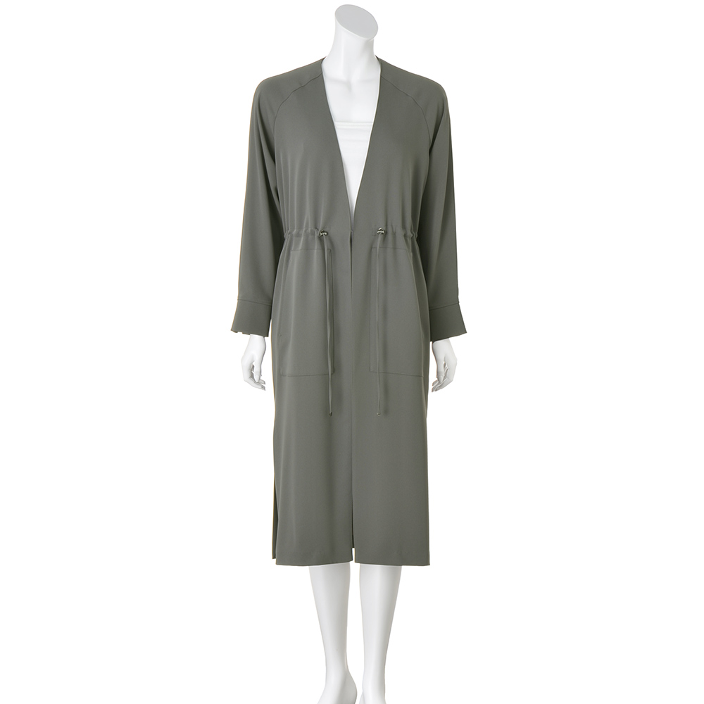 コーディネート例 (コートのみ) /とろみロングシルエットが、こなれ見えのカギ…落ち感のあるとろみ生地が、こなれた印象を与える羽織りは、手持ち服に合わせるだけで、リラクシーな装いが完成します。ロング丈がよりエフォートレスなムードを底上げ。