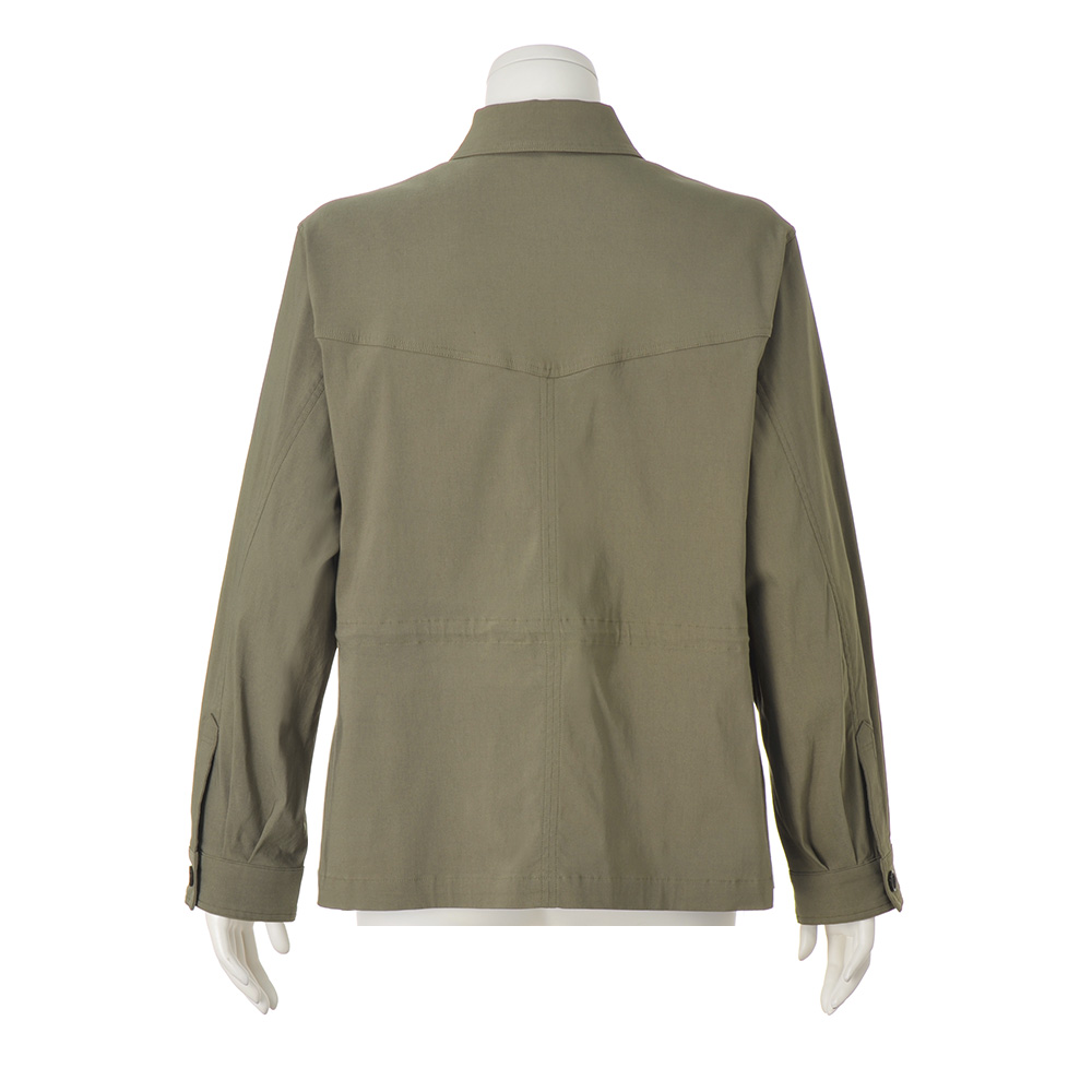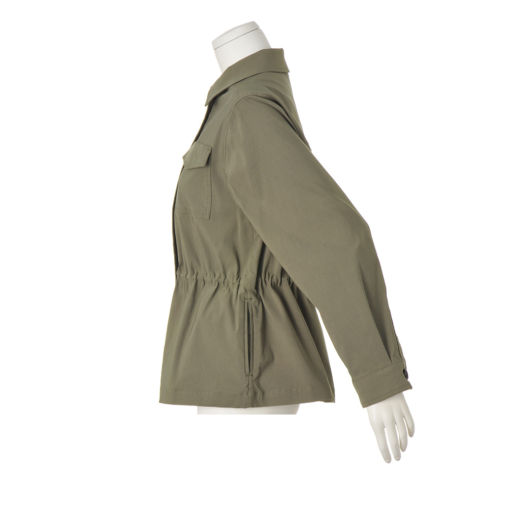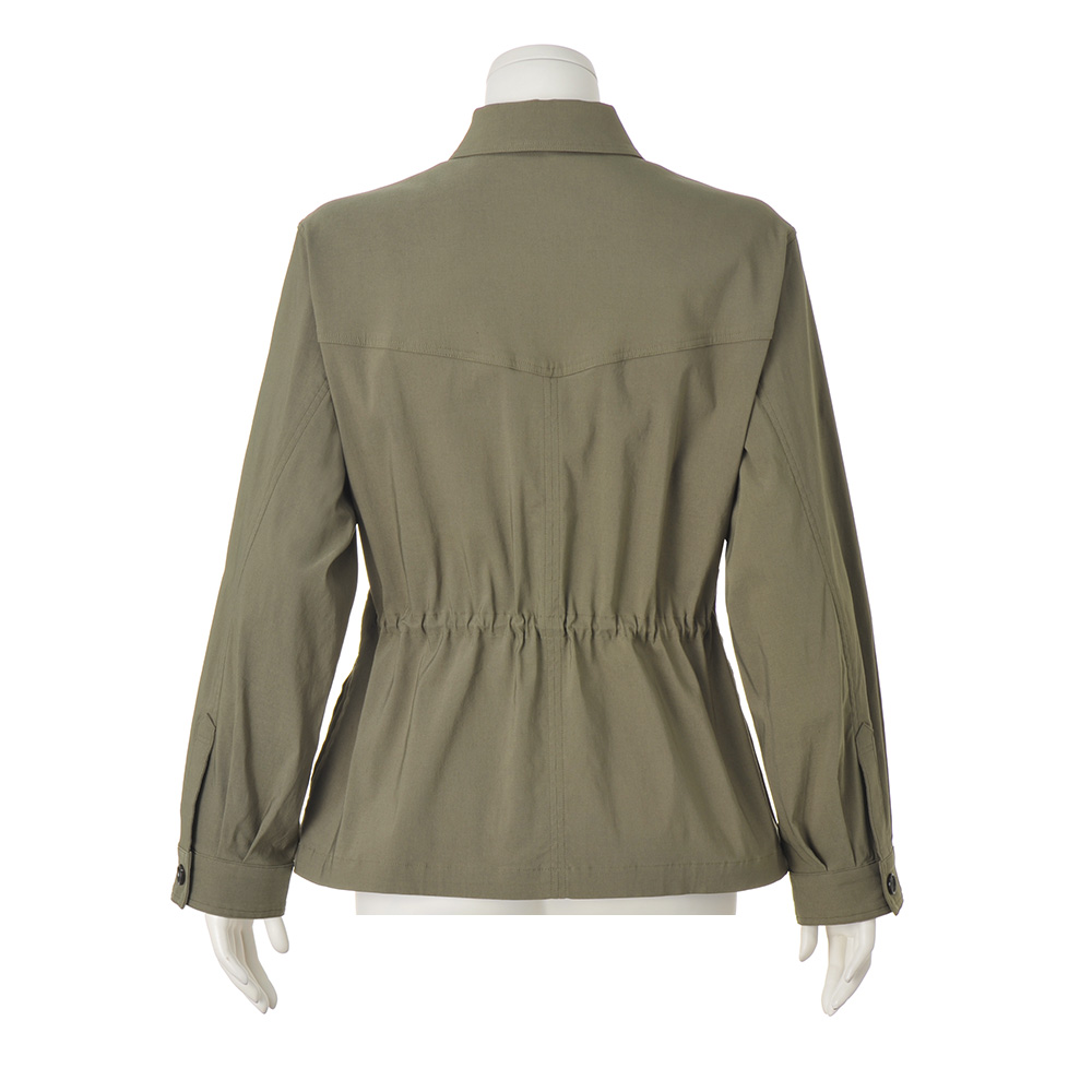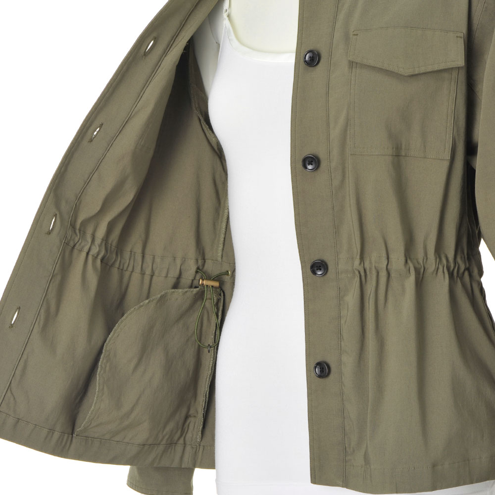 REAL CLOTHES動きやすさも、着心地も、しゃれたバランス感も欲しい。毎日にちょうどいい、気取らない旬のリアルクローズをお届け。媚びないシックなムードで、羽織るだけで一気に洗練。ストレッチの効いた柔らかな着心地は、暑さの残る晩夏から秋まで活躍します。内側にほどこしたドロストでウエストシェイプすれば、ウエスト位置が高く見え、女性らしいシルエットに。お尻が隠れる絶妙な丈感でパンツともスカートとも相性◎