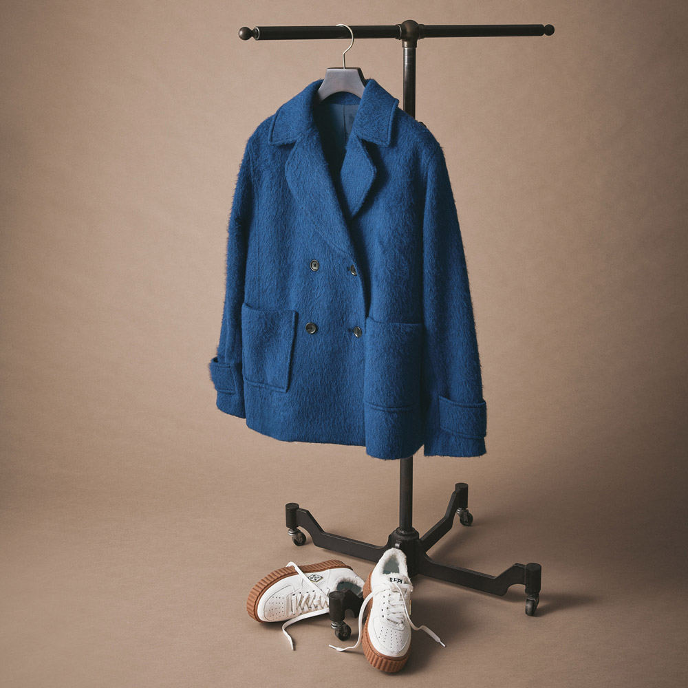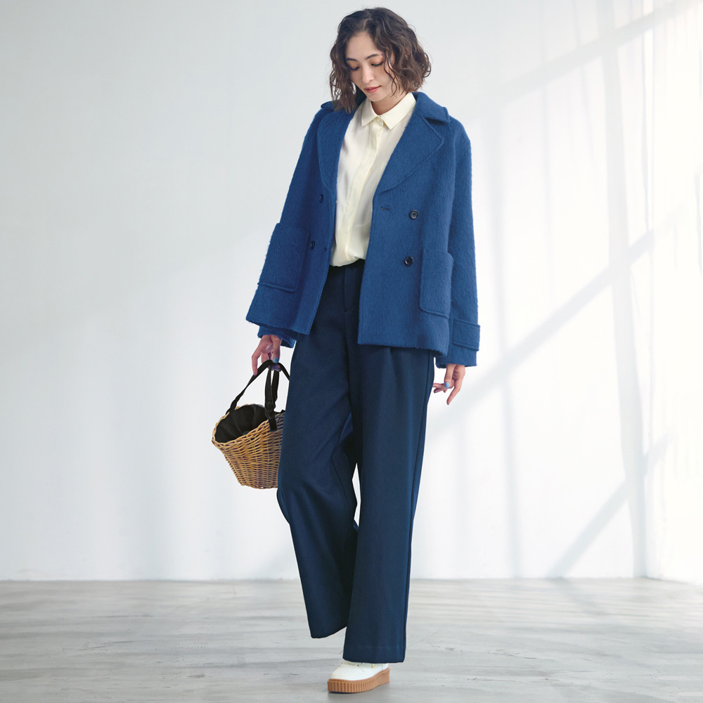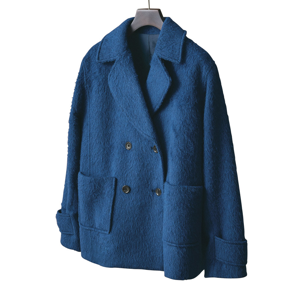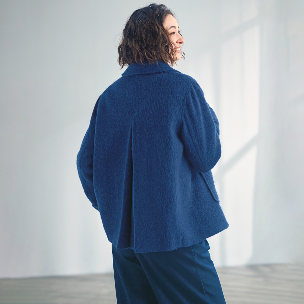 MY FAVORITE ITEM寒い季節こそ、心ときめくアイテムで気分を高めたい。そんな願いを叶えてくれる、私だけのお気に入りを見つけて。さりげない存在感をまとえる深みのある上品ブルーウールの端材を再利用したエコウール糸を使用した、尾州産シャギーの毛足が表情豊か。奥行きのあるブルーのニュアンスカラーが、印象に残る着こなしを実現。中に着込んでも窮屈感のないAラインのゆったりシルエットながら、すっきりした見た目で着ぶくれの心配なし。軽くてしっかりあたたかい、真冬のおしゃれに頼れる一着です。
