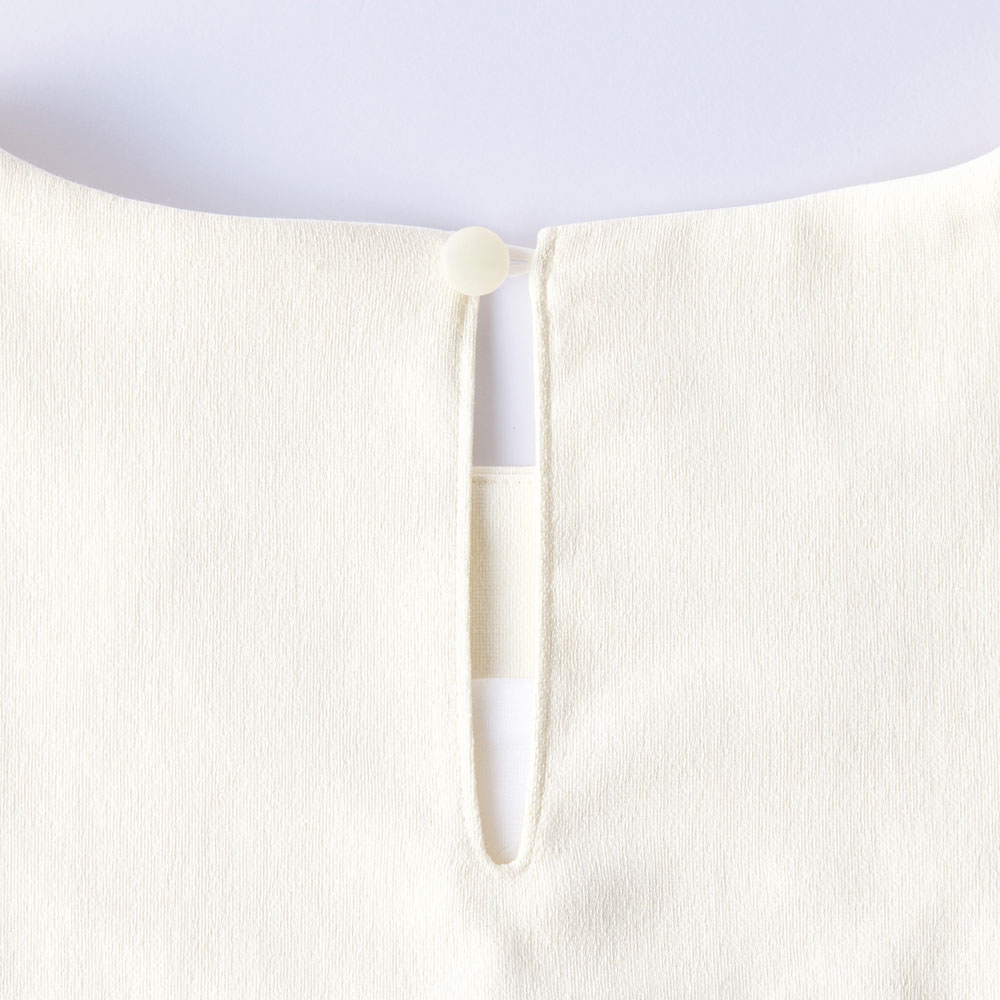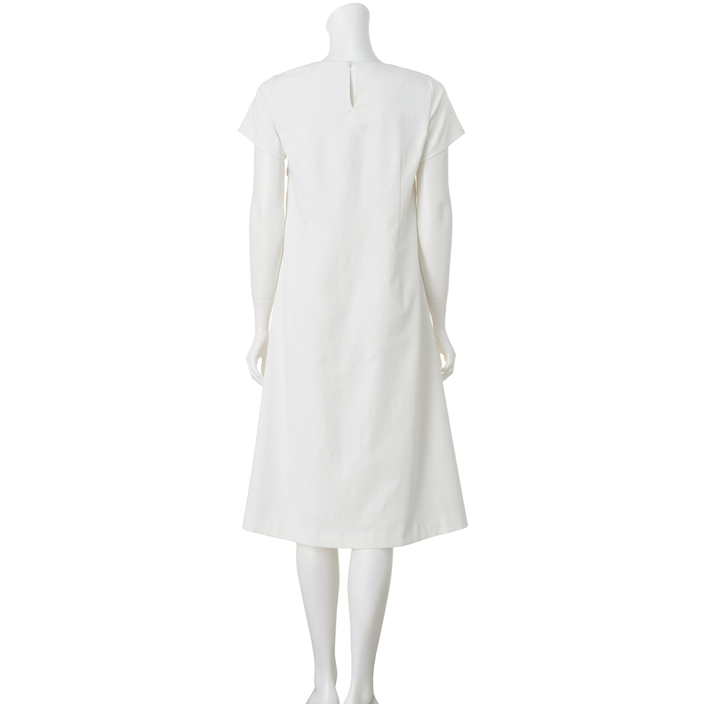 ワンピースは、首後ろの襟ぐりのボタンで着脱をスムーズに。