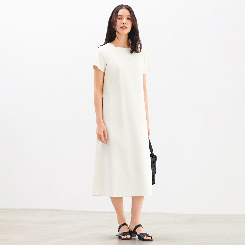 着るだけで好バランス!頼れるセットアップ簡単におしゃれ見えが叶うだけじゃなく、単品でも使えて着まわしも自在。着こなしがマンネリ化しやすい夏こそ、セットアップを味方につけたい。ワンピースは、スクエアネックが顔まわりをシャープに彩り、一枚でも決まる美人見えシルエット。裏地つきだから透けにくく安心です。ジャケット(商品番号:170501)と合わせて縦長ラインを強調するスタイルが、大人の女性らしい洗練感を後押しします。[吸水速乾|透けにくい|UVカット]