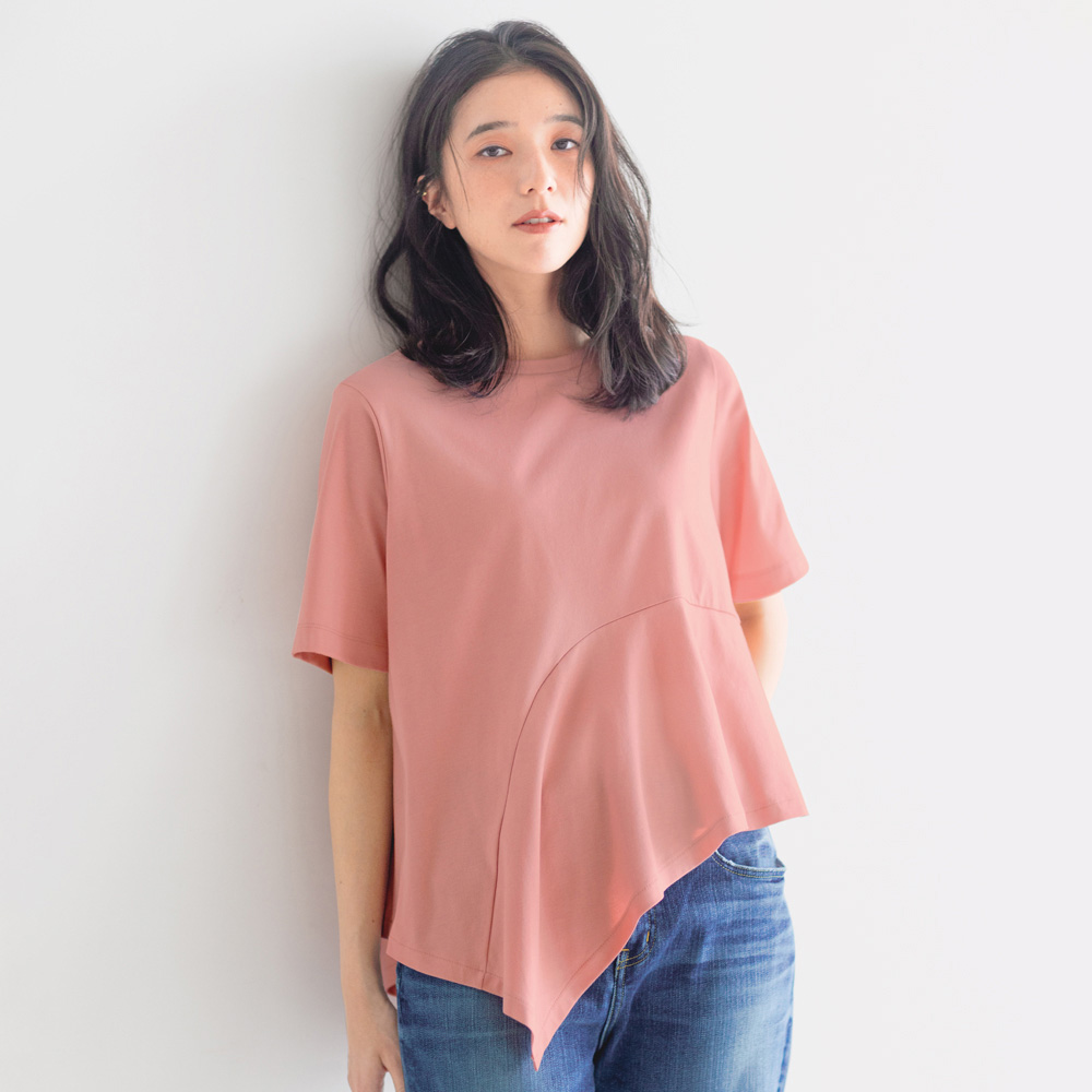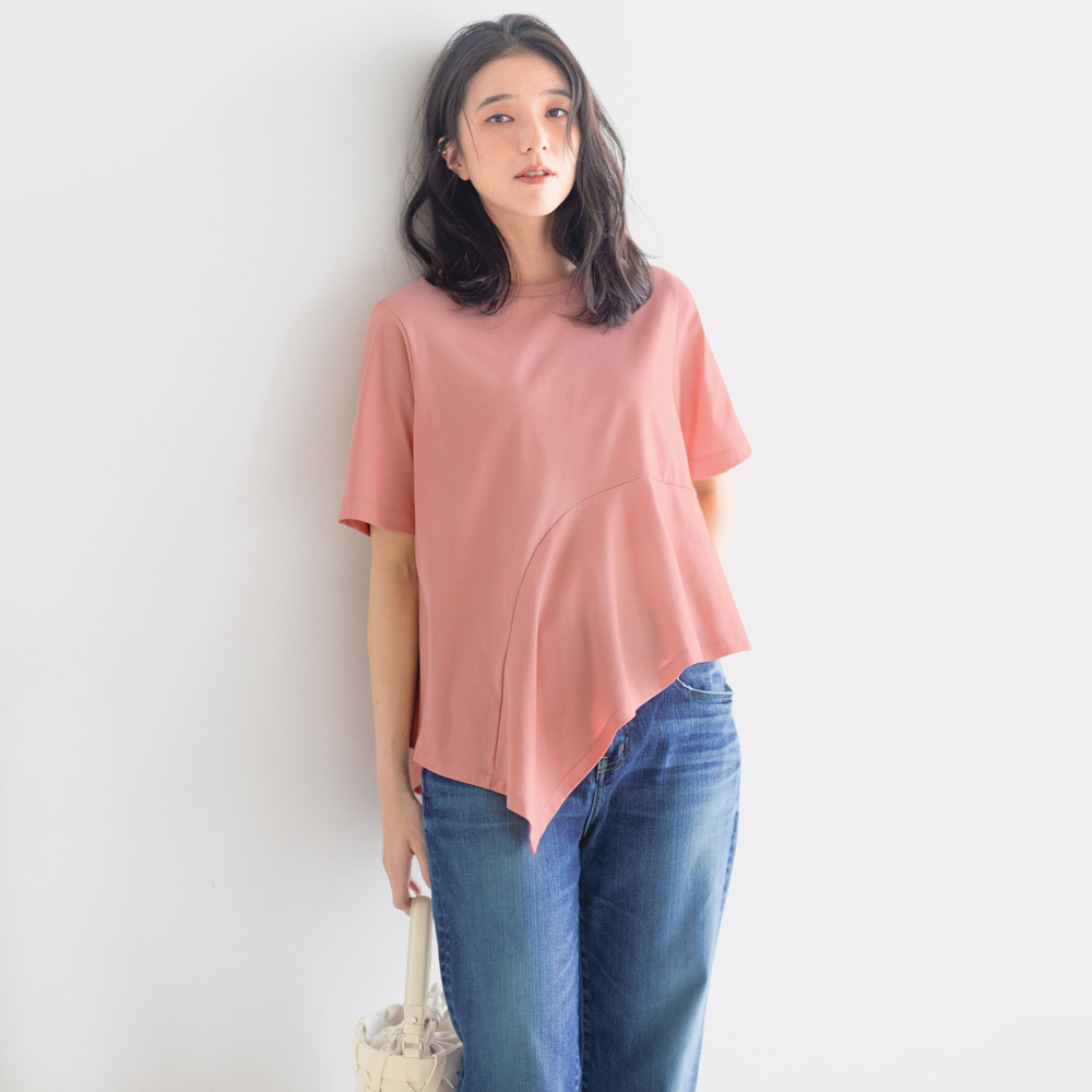 (ア)ピンク コーディネート例/甘すぎない大人ラッフルがポイント サマになるアシンメトリートップス。