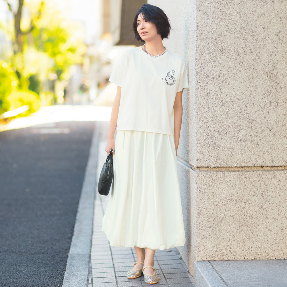 コーディネート例/夏の日差しに映える、モードで洗練されたオールホワイトコーデ。