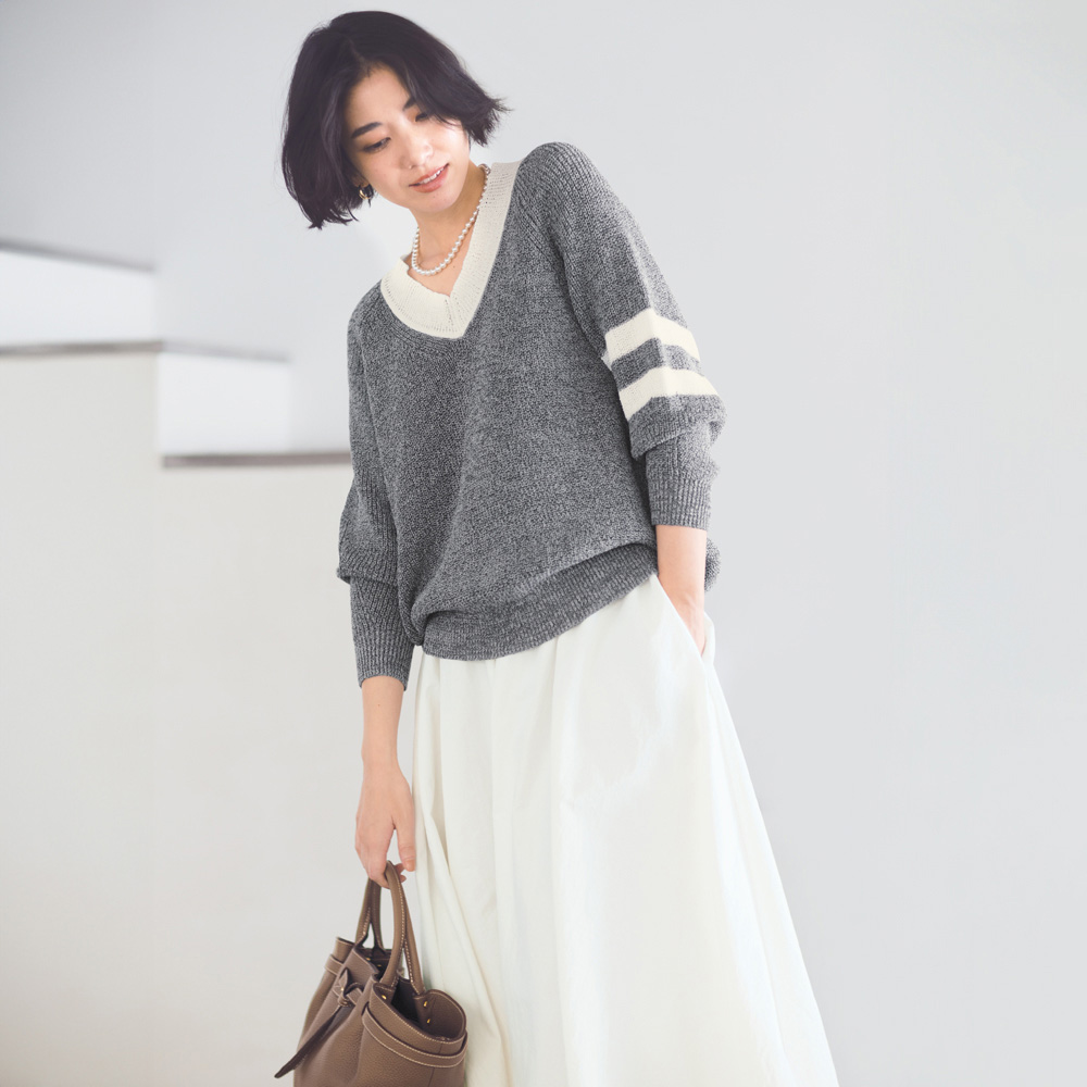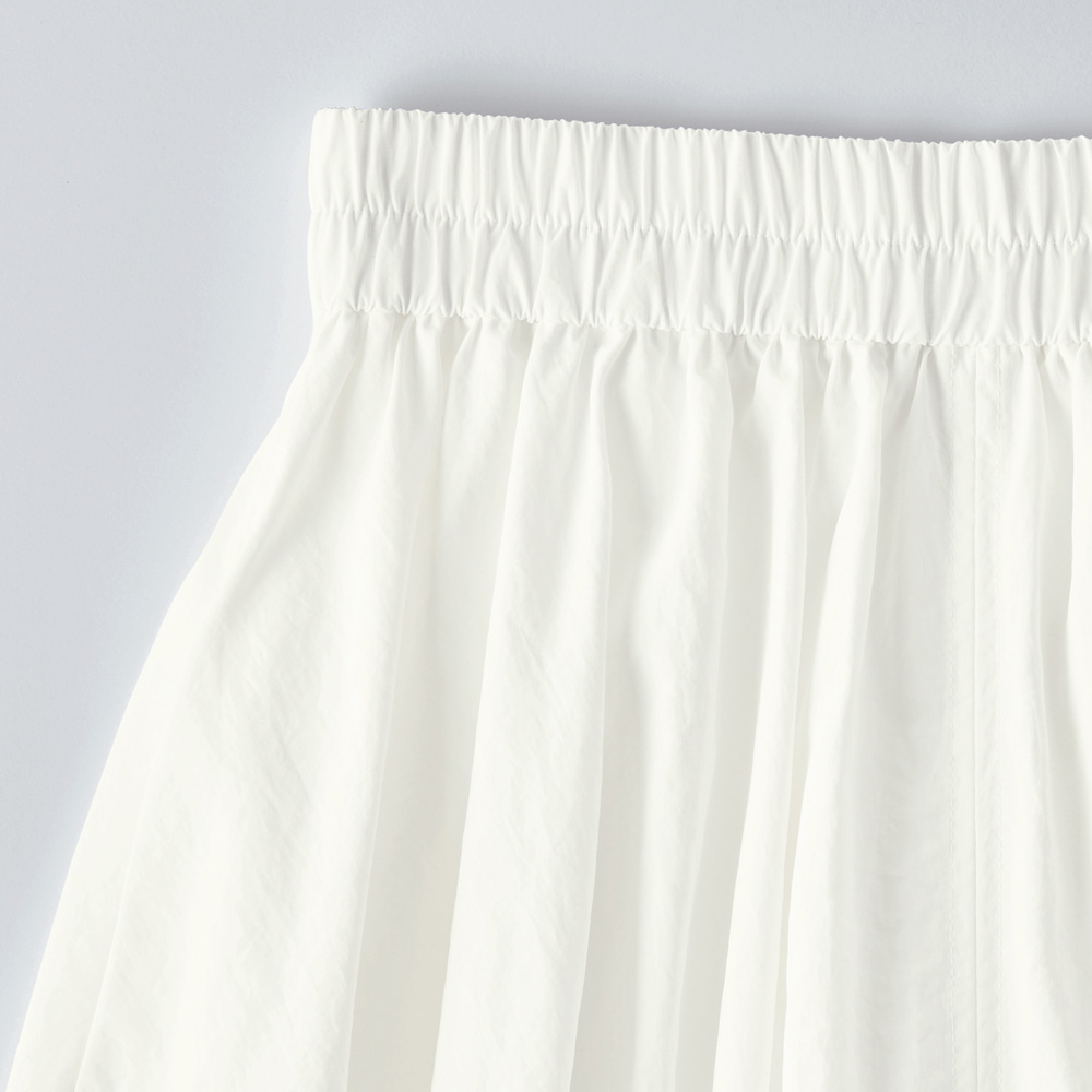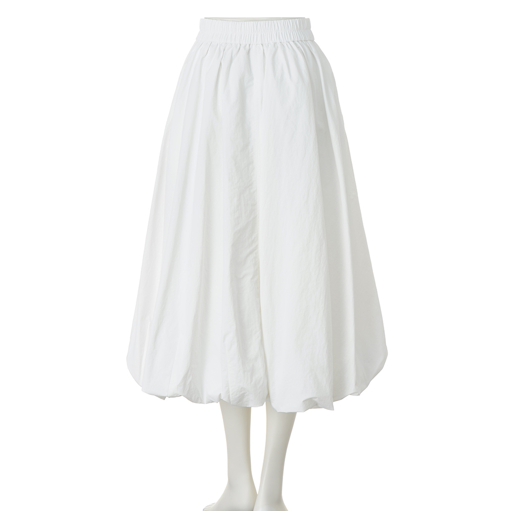 返品送料無料キャンペーン実施中!3/31(火)まで 対象商品Town Sporty上品さと軽やかさを両立した“タウンスポーティ”スタイル。きれいめな装いにスポーティなアクセントを加えることで、日常にもなじむ抜け感のある着こなしに。ロング丈のバルーンスカートはボリューミーながらも、裾にダーツが入っていてバランス調整&大人っぽさをキープ。表面にワッシャー加工の凸凹感があり、さりげない表情を与えます。両脇にはポケットがついていて実用性も高め。スニーカーやサンダル、パンプスなど、どんな足元にもマッチします。