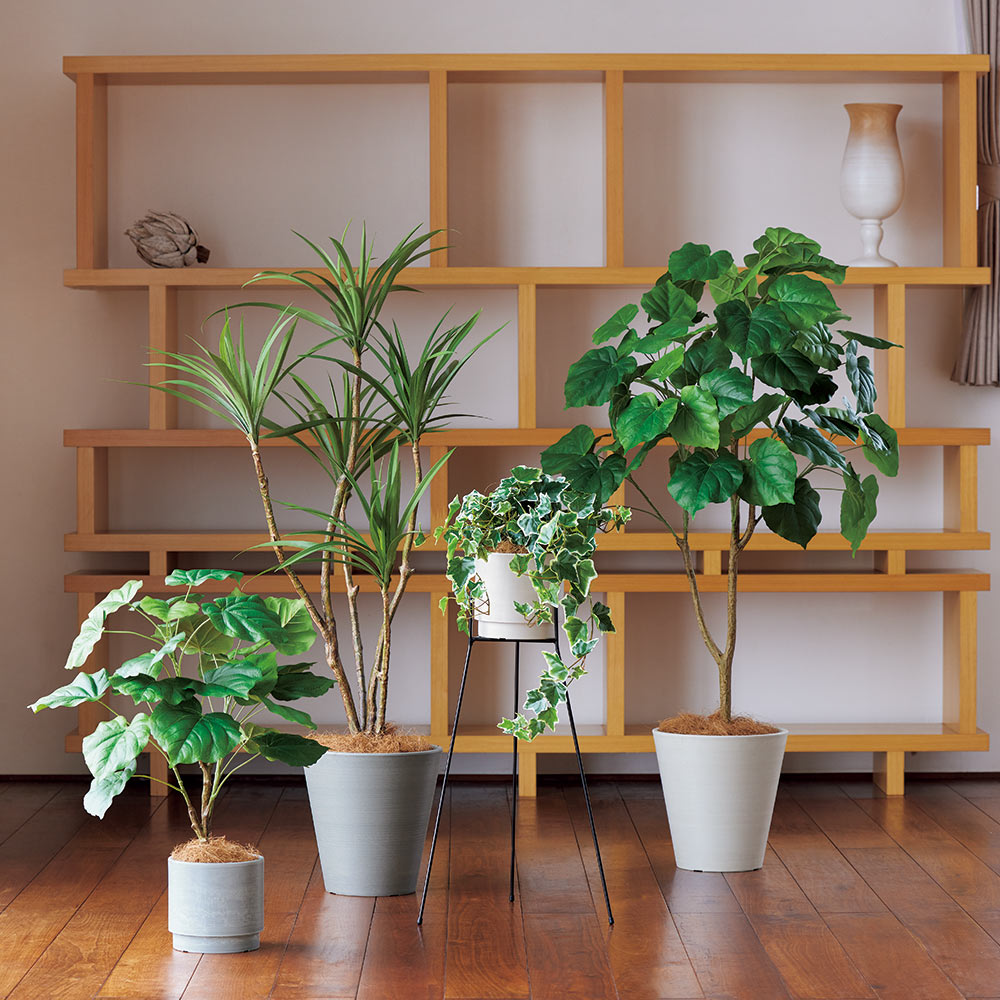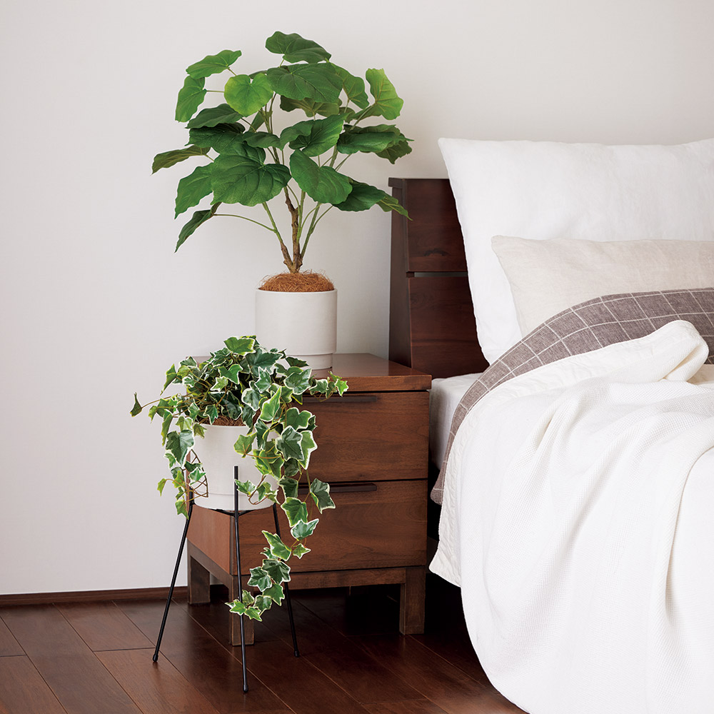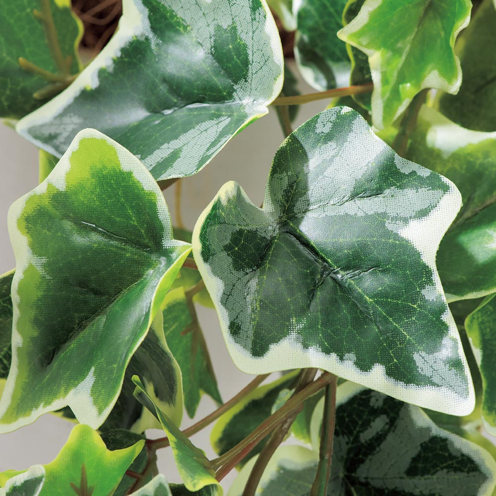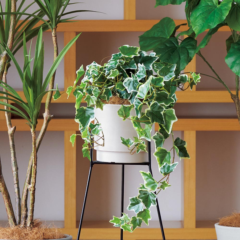 暮らしを豊かにする名脇役。ふんわり流れるラインに安らぎ感が漂う、斑入りで明るい葉色の「アイビー」フェイクに見えないリアルな質感のグリーンで、空間の雰囲気を気軽にチェンジ・斑入りで明るい葉色のアイビーです。・ふんわりと流れるラインに安らぎ感が漂います。・ゆったりと時間が流れるくつろぎ感を演出したい空間におすすめです。・花台やシェルフに置いて流れる蔦のラインをお楽しみください。・安定感の良いテーパー型の合成樹脂の鉢は、割れにくい素材なので安心して飾ることができます。・鉢と植物は固定されています。※こちらのサイズは別売りの「フェイクグリーンスタンド」と合わせてお使いいただくことも可能です。