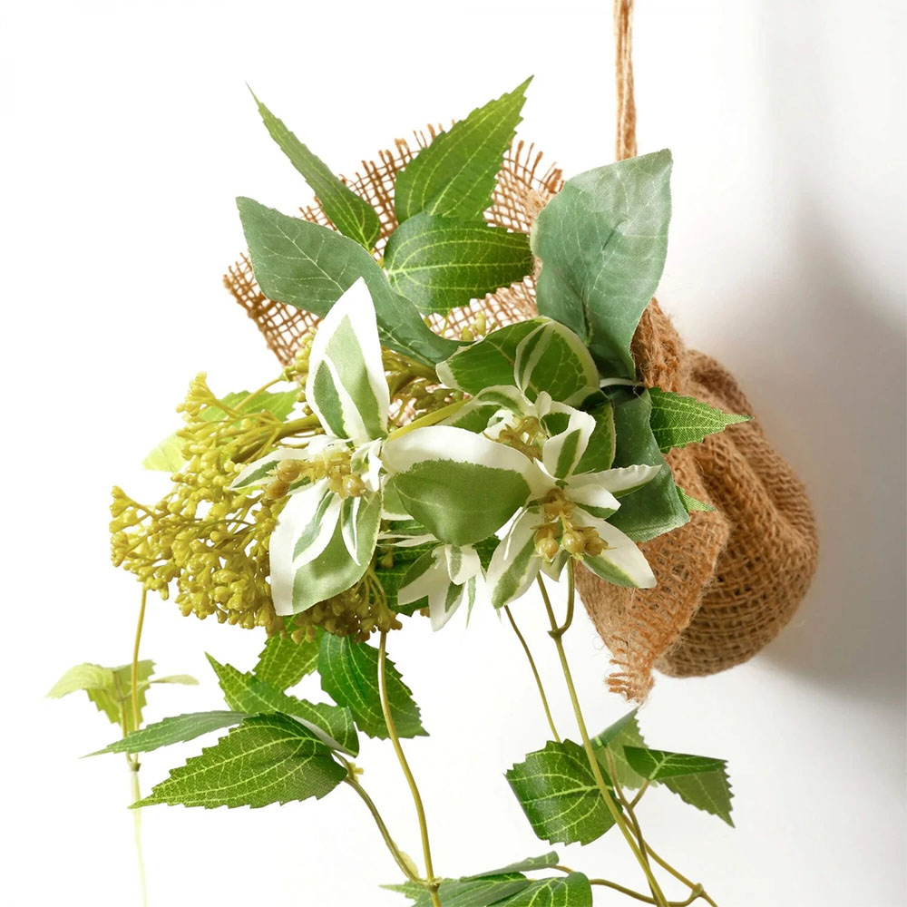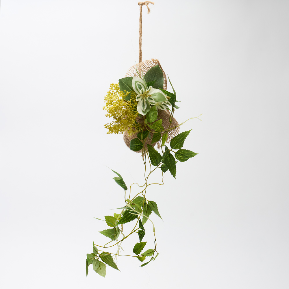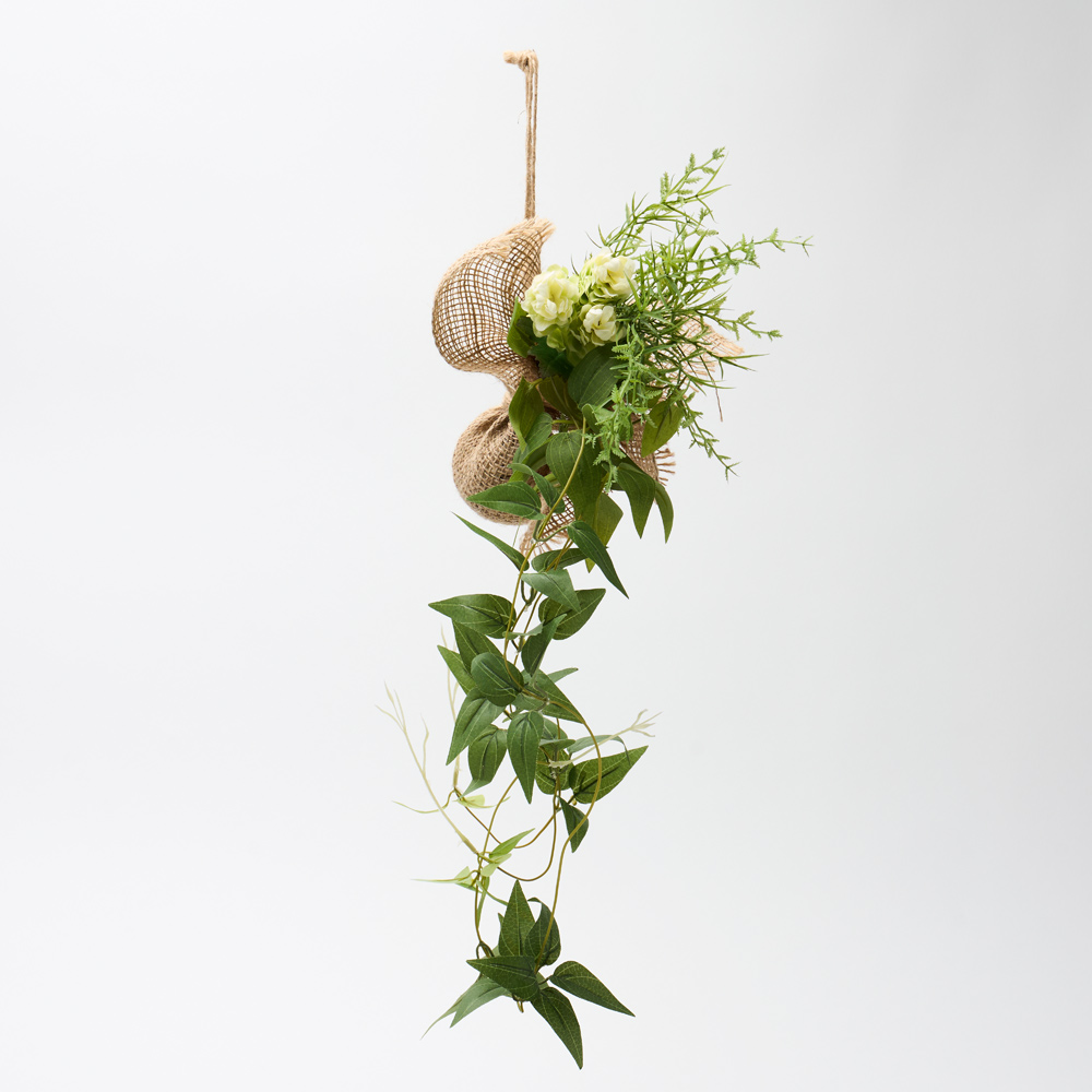 フェイクグリーンでクリーンな空間作りベースの麻袋内は珪藻土。2個セットなので、玄関やトイレなど気になる場所に。どこに置いても絵になるデザイン。おしゃれに消臭!インテリアグリーンで空間リフレッシュ消臭ハンギンググリーンは、飾るだけで部屋の空気を爽やかに整えるインテリアグリーンです。フェイクグリーンのリアルな見た目が特長で、どんな空間にもなじみます。玄関やトイレ、リビングなど、置き場所を選ばず活用しやすいデザインです。簡単に快適な空間へ!袋の中には珪藻土とゼオライトを使用。気になるニオイや湿気を吸収し、部屋の空気を快適に保ちます。忙しい毎日にも手間なく設置できます。メンテナンスフリーで手軽に続けられる本体は手入れ不要なので、水やりや植え替えなどの手間はかかりません。リアルに再現されたホップやハツユキソウは、枯れることなく美しい見た目をキープ。気分や部屋に合わせて手軽に移動や設置ができます。ギフトにもおすすめのデザイン性自然素材の麻袋とフェイクグリーンのナチュラルな組み合わせは、どんなインテリアにも調和。2個セットなので、ご自宅用はもちろん、ちょっとしたギフトとしても人気です。引っ越し祝いや新生活のプレゼントにも選ばれています。