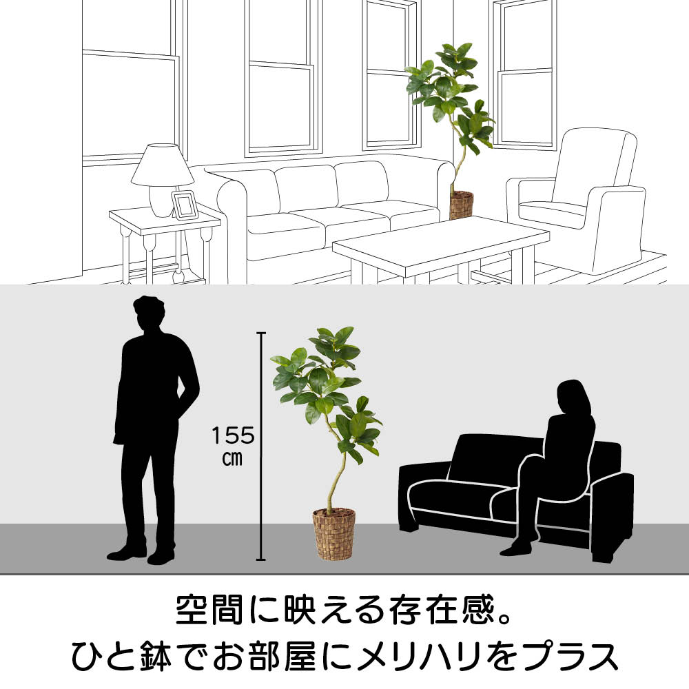 高さ約155cmならではの存在感と濃いグリーンがお部屋をスタイリッシュに彩ります。